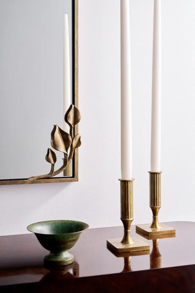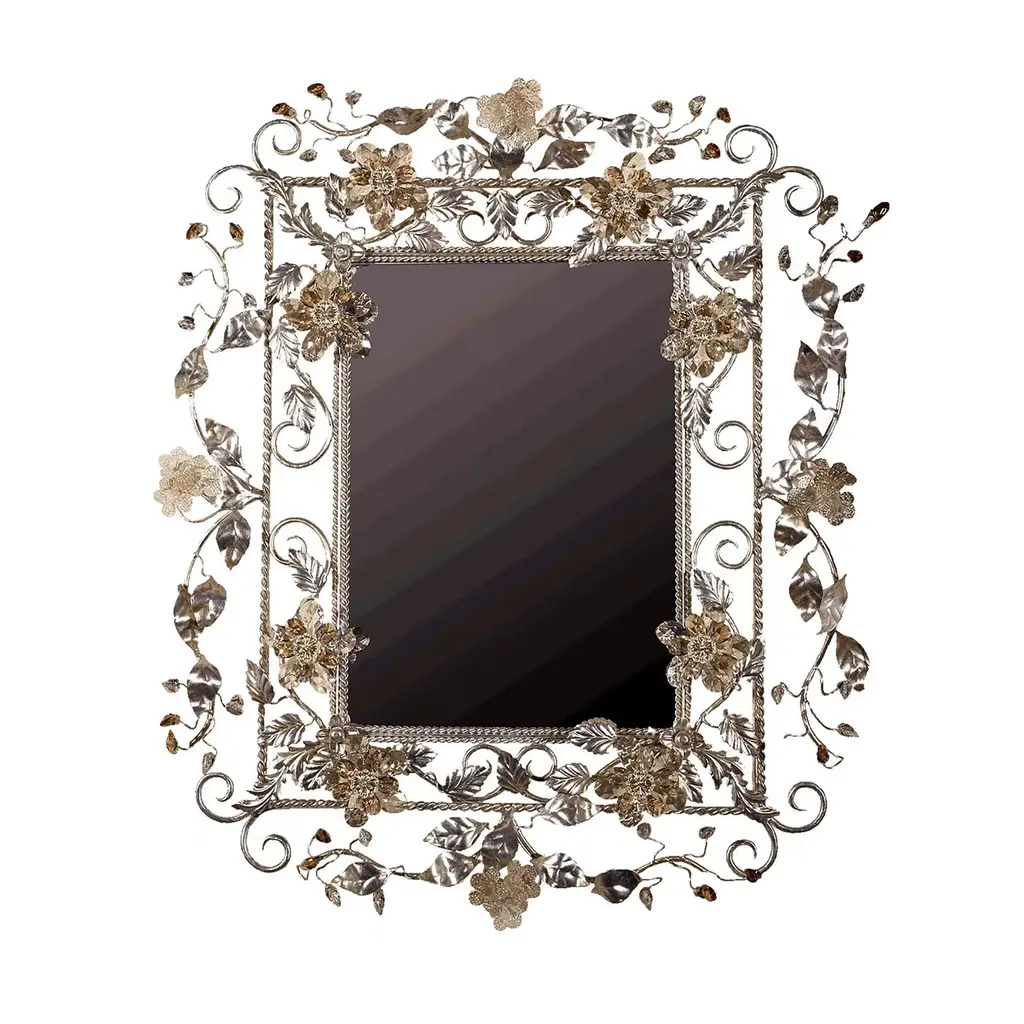 With a frame that feels both refined and organic, the Graceful Leaf Mirror lives up to its name. Sculpted vines stretch gently across one corner and along the edges, adorned with hand-formed leaves that add depth and delicacy to the design. Whether you envision a round, oval, or rectangular silhouette, each mirror is crafted to order—custom sizes and finishes available upon request to harmonize with your space. Designed to brighten entryways, powder rooms, or living areas, it reflects light in a way that feels as organic as it is elegant. Bring your vision to life with a mirror that’s truly personal, purposeful, and poetic.Our finishes are applied by hand rather than by machine and are influenced by various elements such as time, touch, and climate, which give each piece its own unique character. Each piece is unique, with slight variations, due to the artisan nature of our handcrafted finishing process. Handmade in the U.S.A., the lead time for the standard size is 6-8 weeks plus shipping.