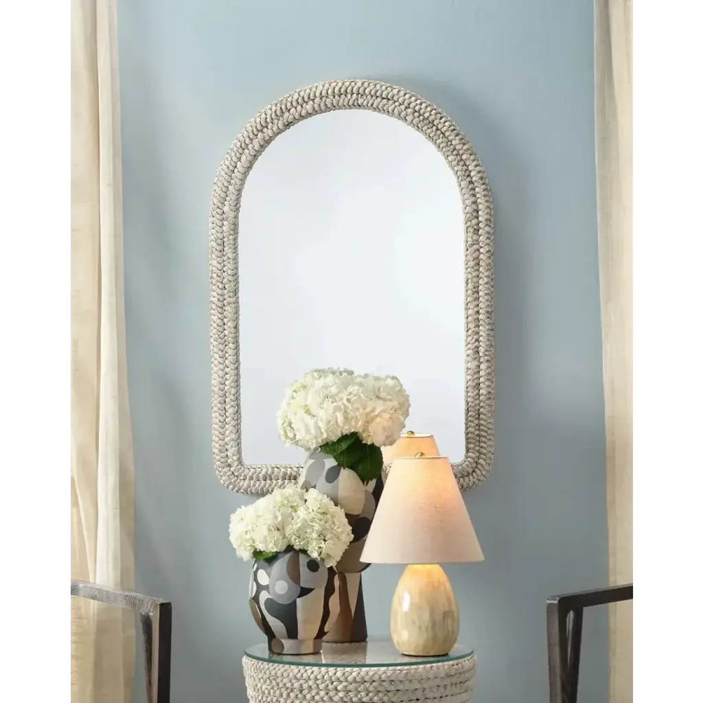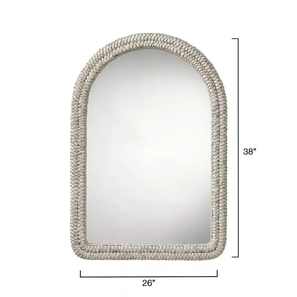 Elegantly wrapped with two rows of braided corn husk, this arched mirror adds a touch of lightness to any casually refined décor. The unfinished husk showcases a variety of natural colors, introducing unexpected depth to its neutral palette. The result is a beautifully refined tropical accent that is simply lovely.