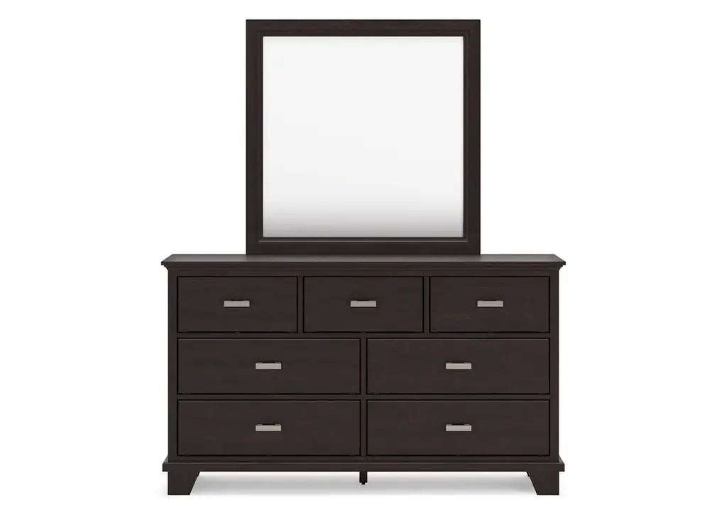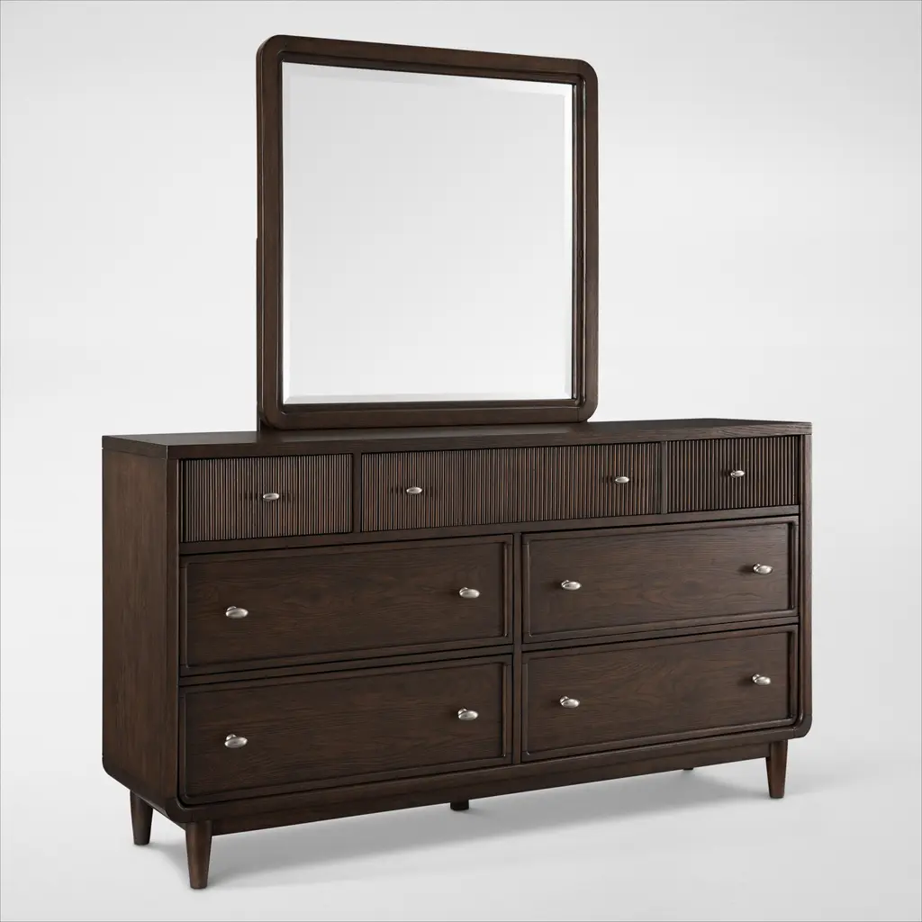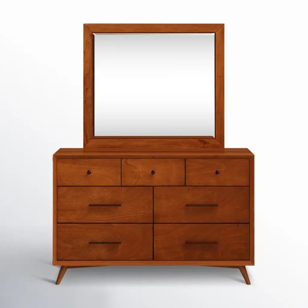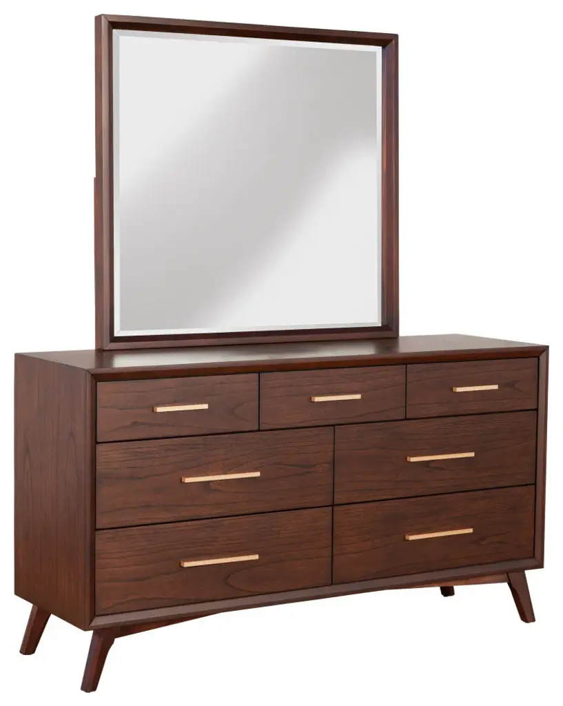 The streamlined design of the Gramercy mid-century wood mirror creates a stunning focal point in your space. The Gramercy collection pieces are structurally sound and constructed with Mahogany wood solids and veneer in a classic Walnut finish. The Gramercy collection hints at subtle refinement, without overpowering your current decor. The pieces in the Alpine Furniture Gramercy collection fluidly fits in with a variety of aesthetics and color schemes to compliment your bedroom setting. Coordinate with other pieces from the Gramercy bedroom collection.