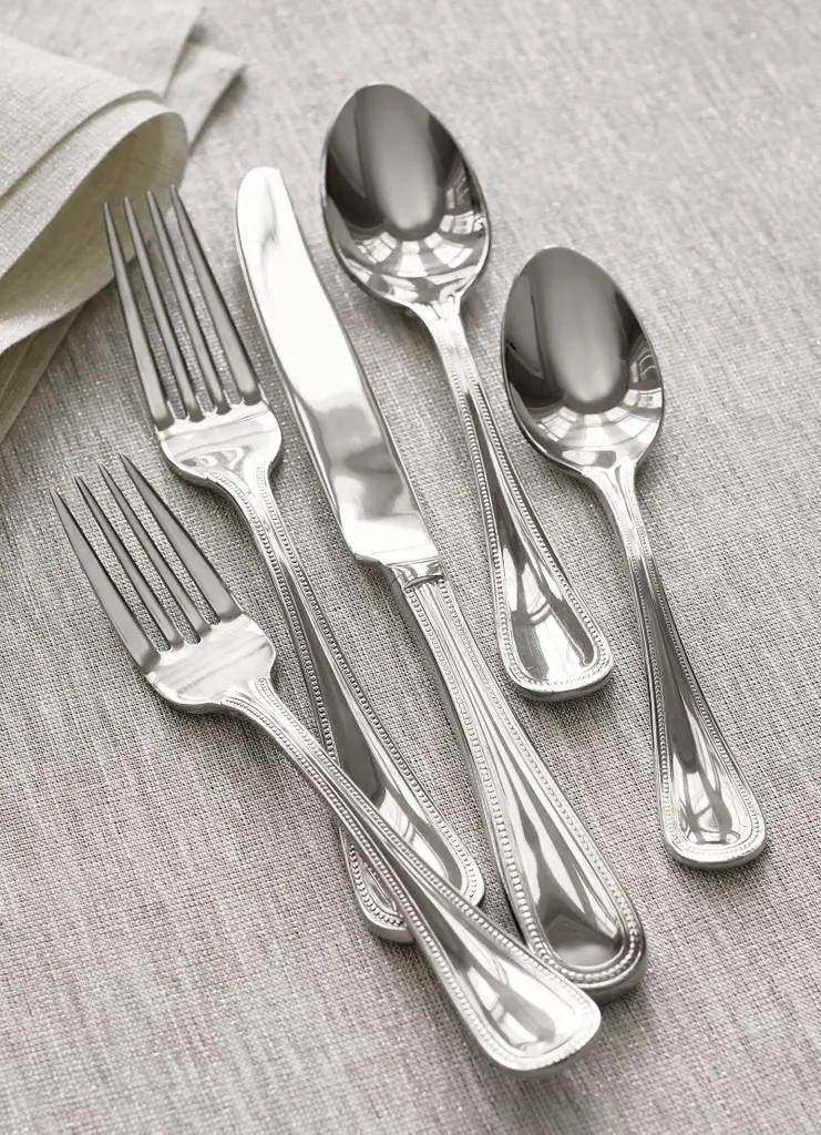 In the gracious tradition of our Grand Hotel flatware, this new version is scaled up and even more substantial in weight. The classic design features intricate beadwork accentuated with a subtle dome in the center of the handle.