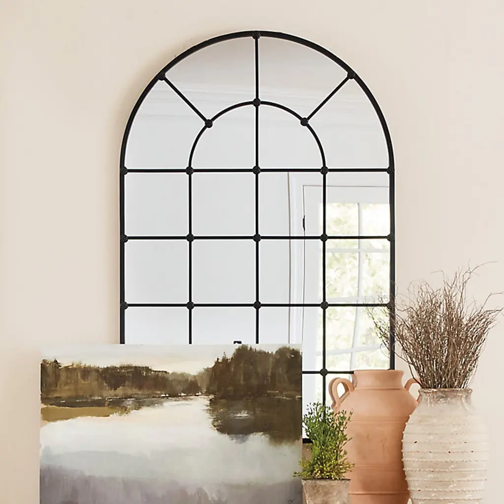 Create the illusion of a Palladian style window and fill your room with reflected light with our dramatic Grand Palais Arch Mirror. Twenty-two faux mullion panes are accented at the corners with textured medallions.Grand Palais 54" Arch features: