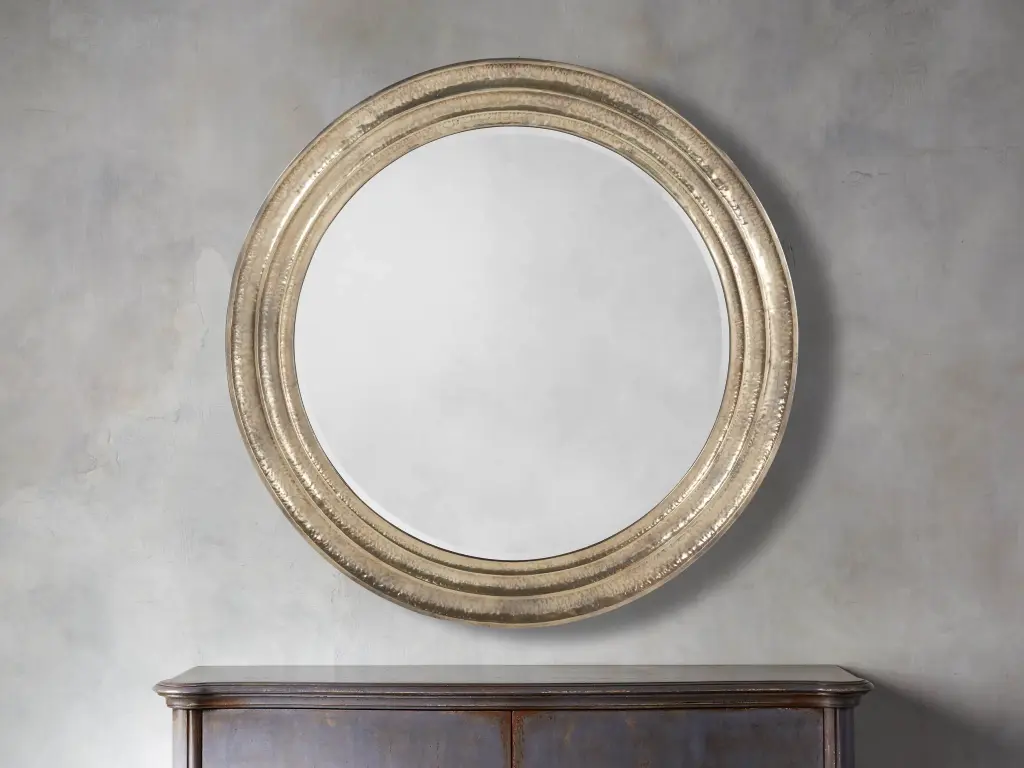 Our Grand Stepped Mirror features a wide, galvanized-metal frame with an antiqued silver finish. Its large size and layered detailing make this accent mirror a true work of art.
