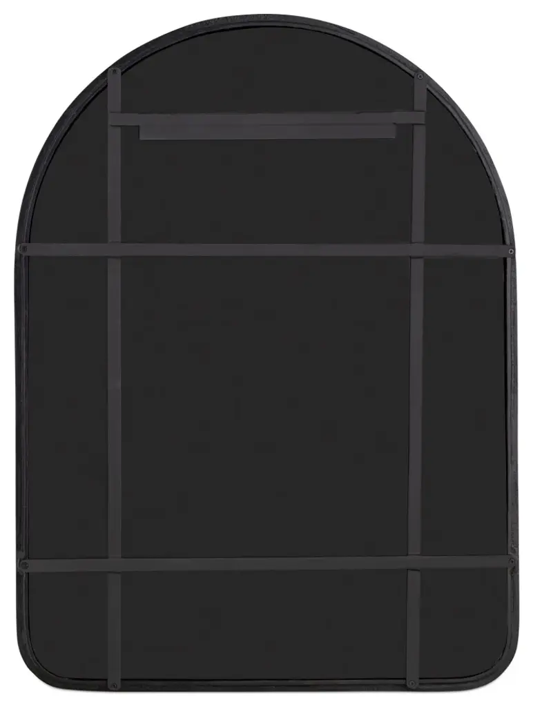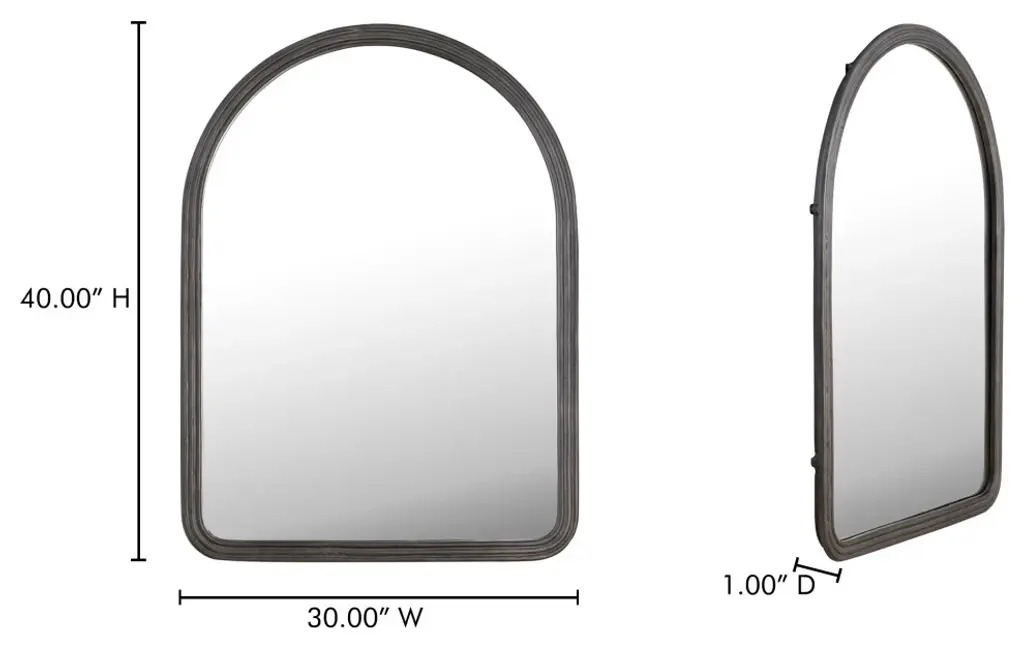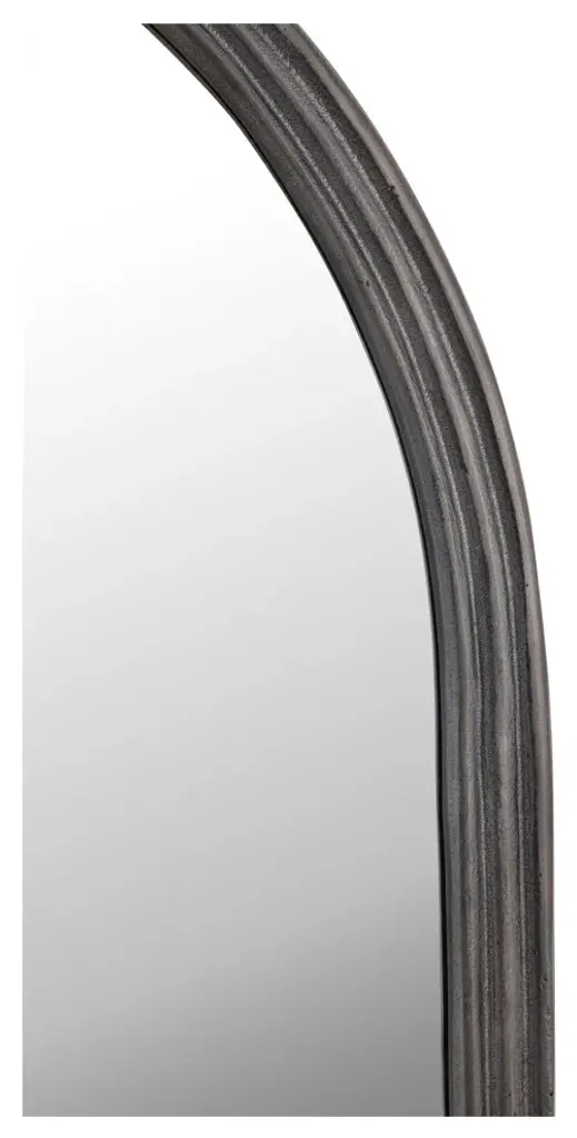 The Granger mirror presents simplicity and modernity through its minimalist arched design. It features a weighty feel with a defined channeled detail that runs along the outside, accentuated by a sophisticated black finish with variations in texture and color due to its cast finish.
