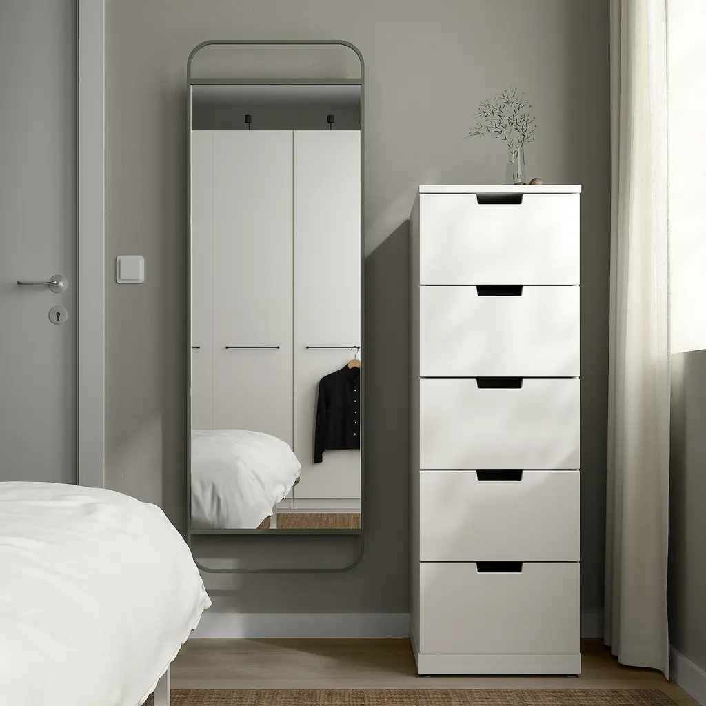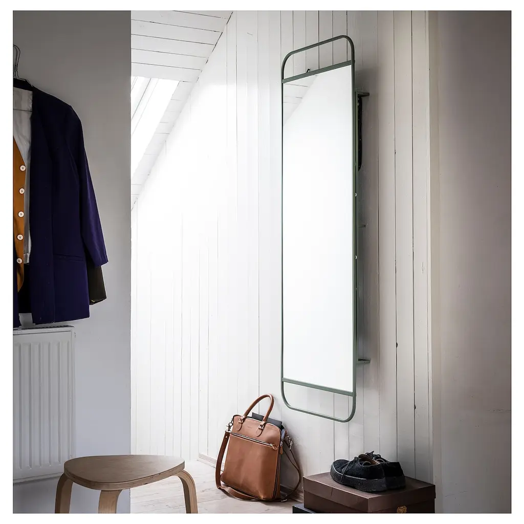GRANVÅG Mirror with storage - wall hanging/green 19 5/8x59 ". By decorating with this large, decorative and functional mirror, you add depth to the room so that it feels bigger and brighter – while the mirror helps you store your accessories.