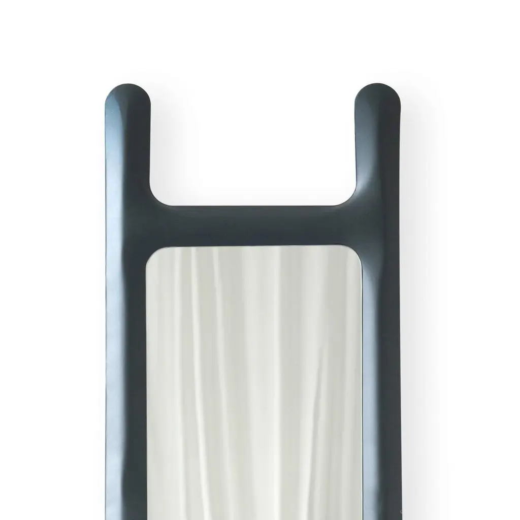 Graphite drab sculptural wall mirror by ZietaDimensions: D 6 x W 46 x H 188 cm Material: Mirror, carbon steel. Finish: Powder-coated in graphite grey matt.Also available in colors: stainless steel, or powder-coated. A DRAB mirror is an object that combines a steel frame with a glass mirror. It is an effect of the experiments with the inflated steel created with the use of FiDU technology that has led Oskar Zieta to create a DRAB hanger and DRAB mirror.DRAB mirror owes its name to its simple form that resembles a ladder (in Polish “drabina”). It is a minimalist object with an elegant framing that can be hung on a wall or leaned against it. In both arrangements, it will add a pinch of elegance to every contemporary interior.DRAB mirror is a geometrical mirror and a decorative object. Contrary to such mirrors from Zieta Collection as RONDO, TAFLA, or OKO, the inflation effect is not so obvious in its case. The deformations of the inflated steel are subtle just as the slender vertical shape of the mirror. The delicate folds are highlighted in the convexity of this simple form.The DRAB mirror can be used as a bedroom or bathroom mirror. It will also serve perfectly as the finishing touch in a modern or classical hallway or corridor. It is a perfect decorative object for private and public spaces such as hotel rooms and SPA parlors.About Zieta: Zietas main goal is to deliver uniqueness and customization in design and construction while keeping the production, transport, and warehousing innovatively efficient.This is how they imagine the future world: Light, durable structures of customized applications produced on demand out of one-of-a-kind parts, yet efficiently.They use a computer-controlled production process. Customized pattern, customized form, customized function, one-of-a-kind product, and outstanding precision are what they deliver.You will find all of this philosophy reflected in the products. They research, they discover new possibilities, they play with forms and they deliver a beautiful, innovative, surprising outcome to people who love the design and who care about design development.They believe their work is a valuable contribution to the world of design not only by the unique beauty of the forms but most of all by opening ultra-innovative opportunities of forming and new paths for the world of the future.