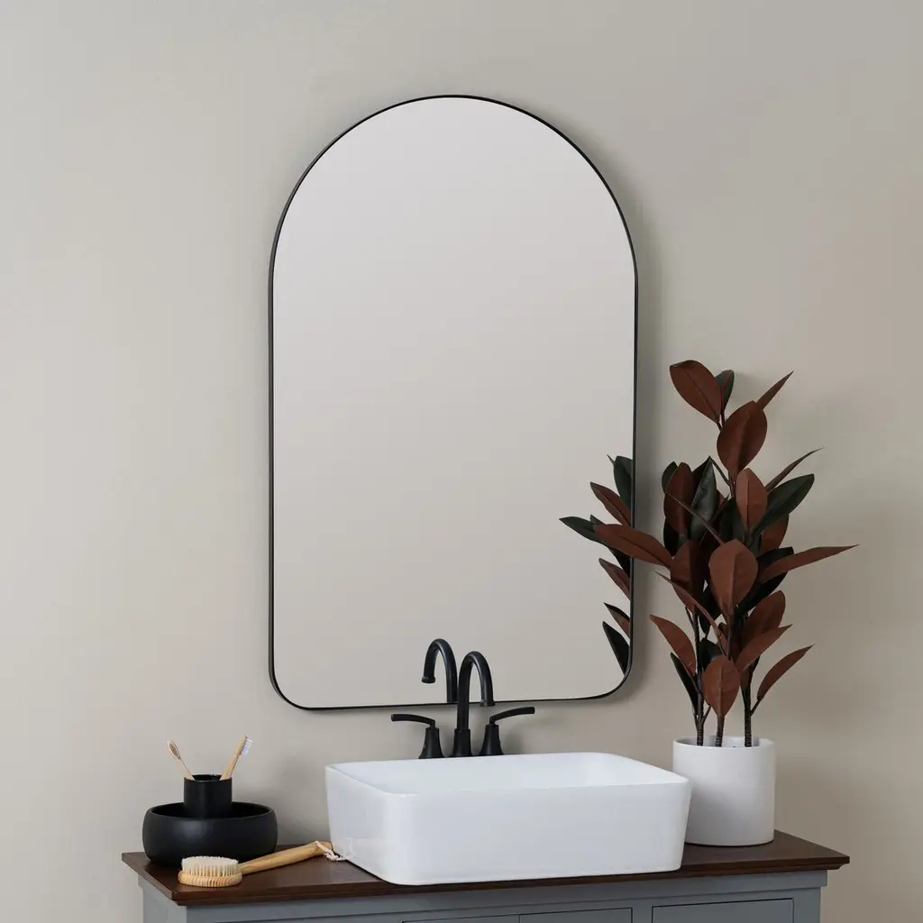 Curves remain a popular design element, and this wall mirror uses them subtly yet chicly. Not only is the top arched, but the bottom corners are rounded as well. The black frame adds timeless finesse.