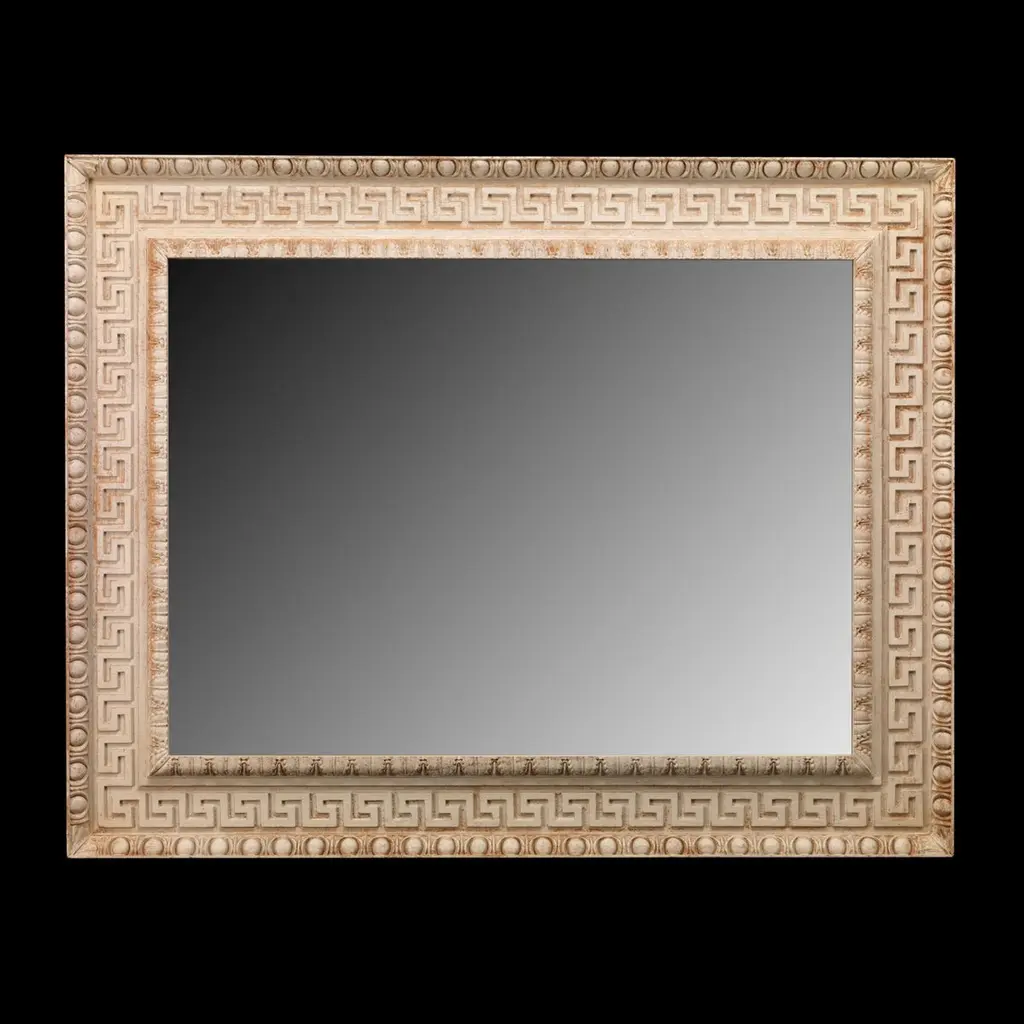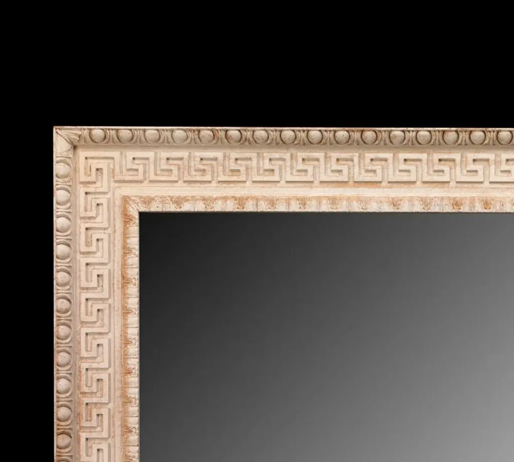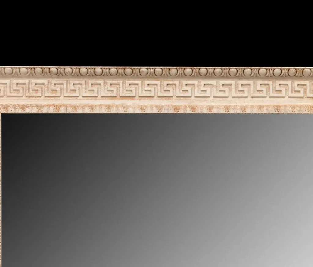 A pair of rectangular Greek key, egg and dart decorated classical Grand Tour inspired overmantel mirrors in an aged Gesso finish.We are currently working to a 30-36 week lead time.
