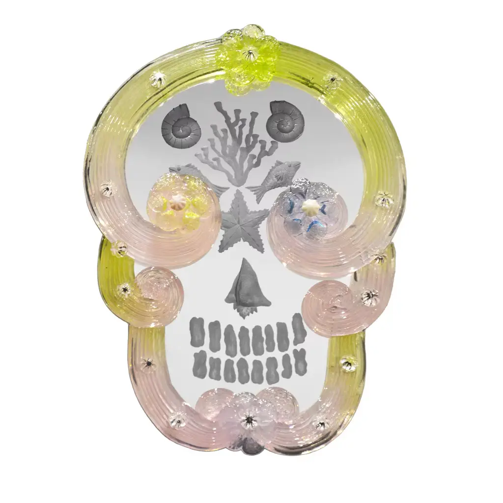 Artemest collaborated with Ongaro & Fuga and artist Bradley Theodore on this piece to be showcased at the exhibition BLOW: Bradley Theodore Meets Murano. This mirror has been handmade with a special ombré color palette, achieving a unique effect. Bradley Theodore's childhood iconography like corals, pineapples and palm trees have been fully engraved by hand with a traditional diamond wheel, a mark of exceptional craftsmanship. Please note that this piece has been part of the BLOW collection by Bradley Theodore on show at Artemest Galleria in New York.