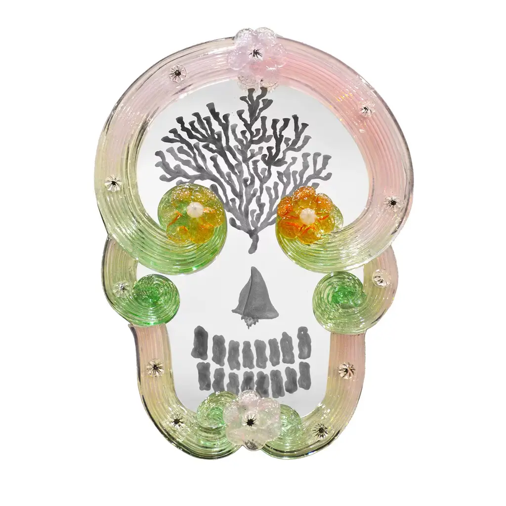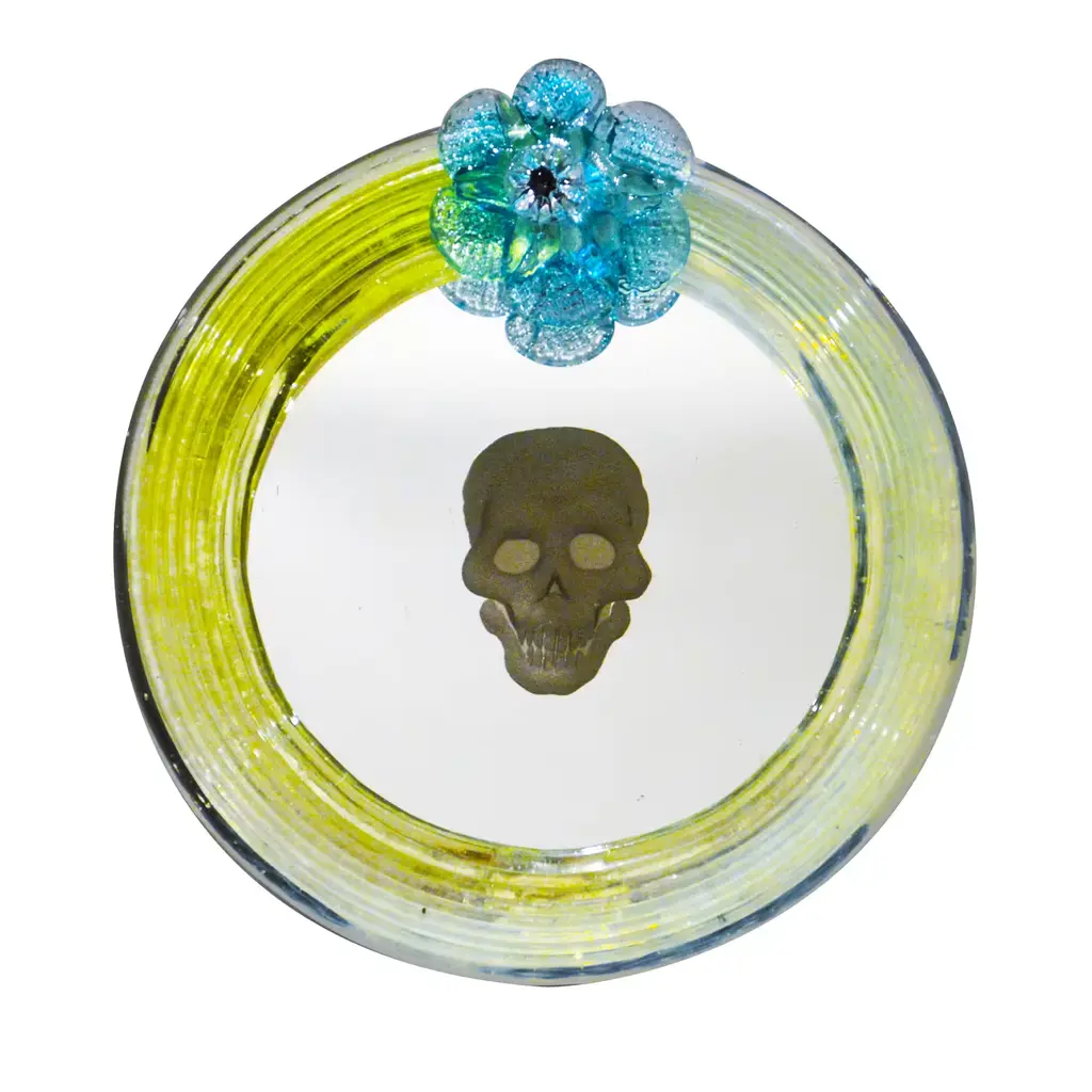 Green And Orange Xl Pop Skull Mirror By Bradley Theodore