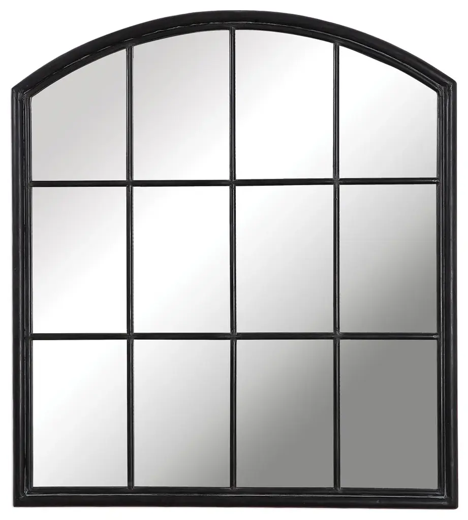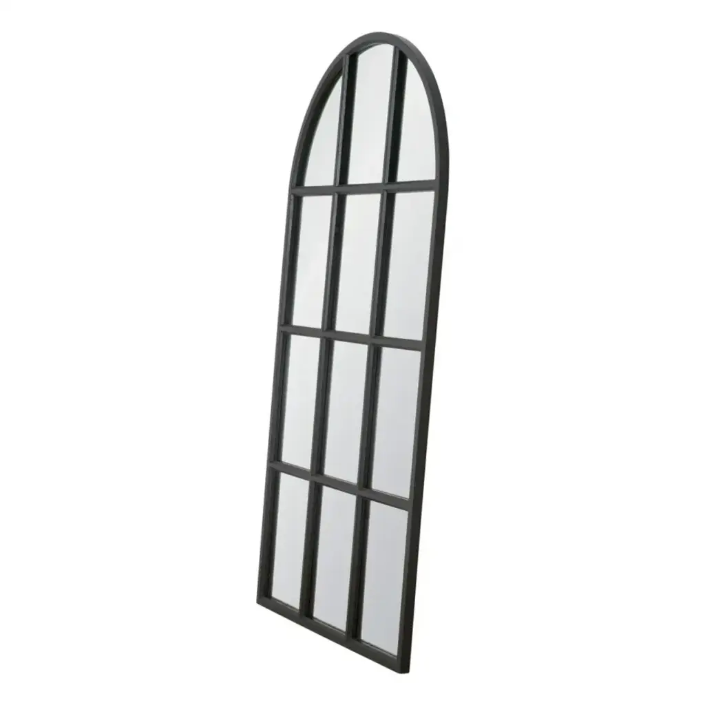 Grid Arch Mirror Matte Black Oak