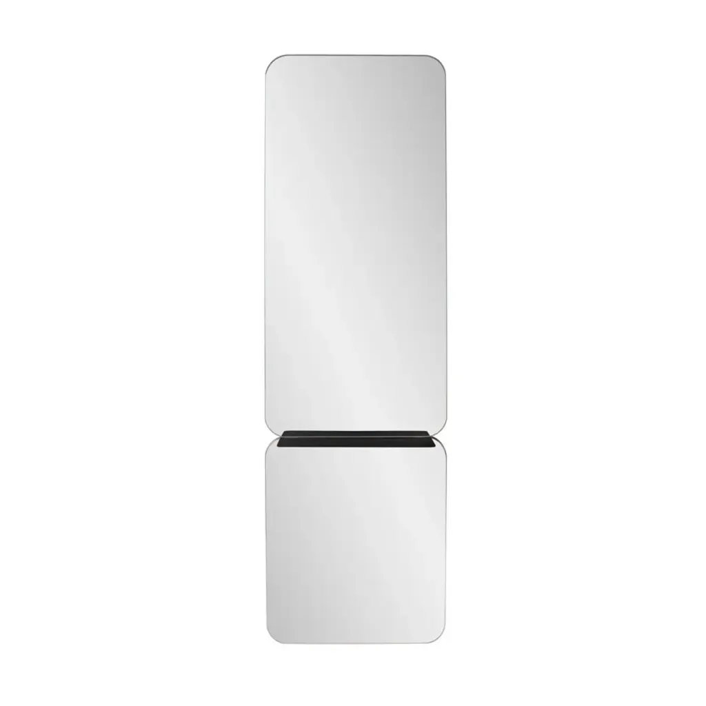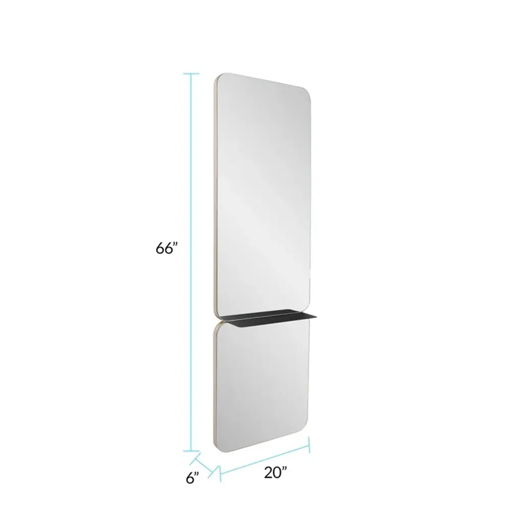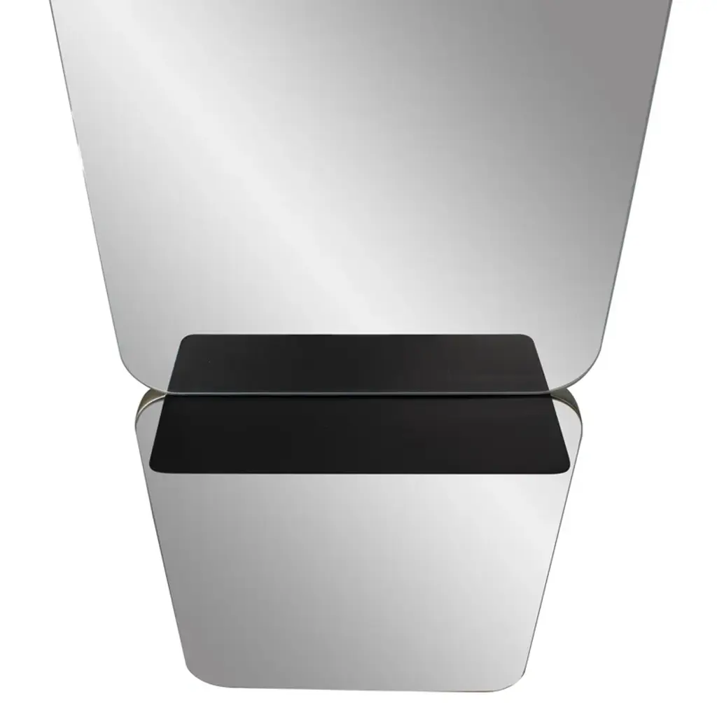 This sleek, frameless mirror offers a minimalist design with a thin metal shelf, ideal for small spaces. Perfect for entryways or dressing areas, it combines modern style with functionality, seamlessly blending style and practicality.