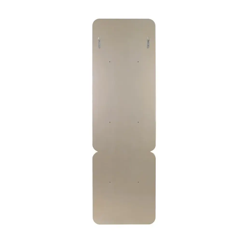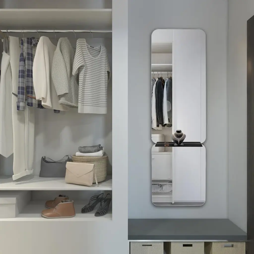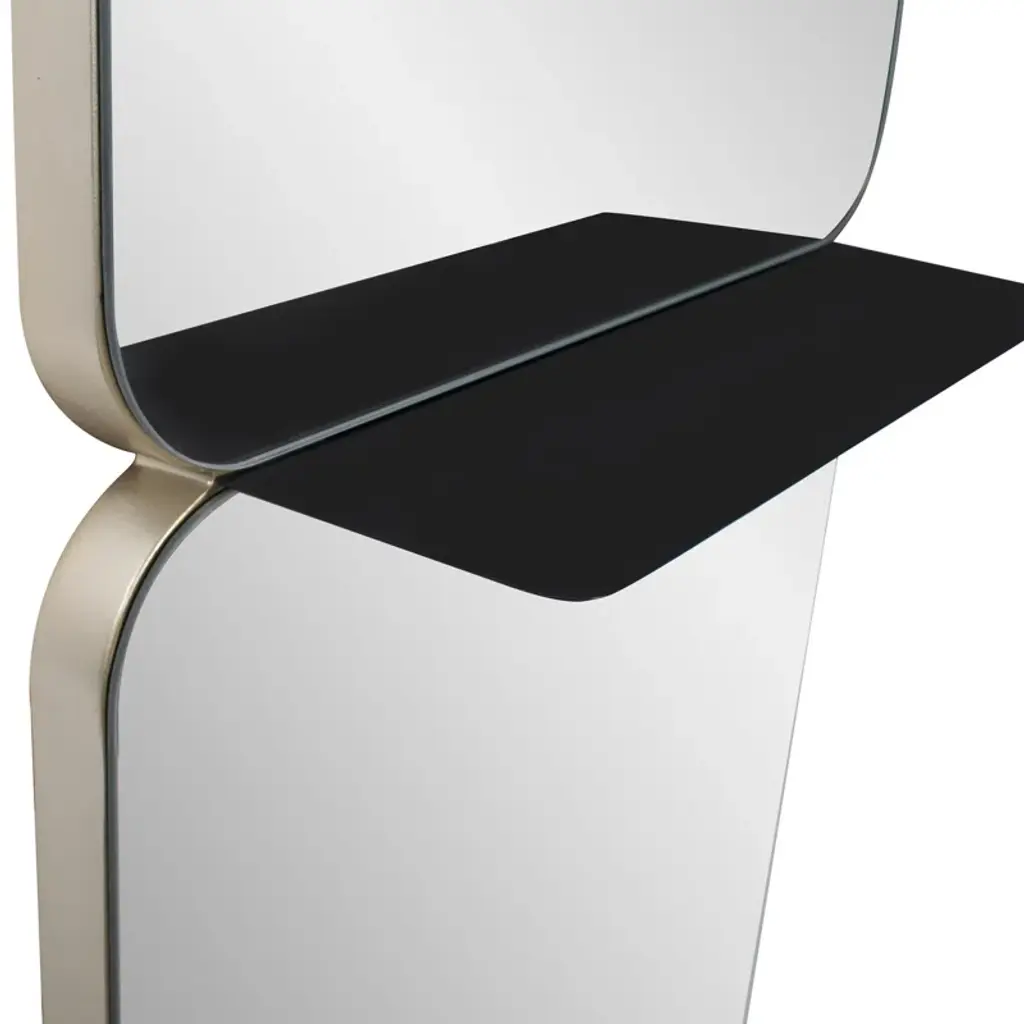 This sleek, frameless mirror offers a minimalist design with a thin metal shelf, ideal for small spaces. Perfect for entryways or dressing areas, it combines modern style with functionality, seamlessly blending style and practicality.