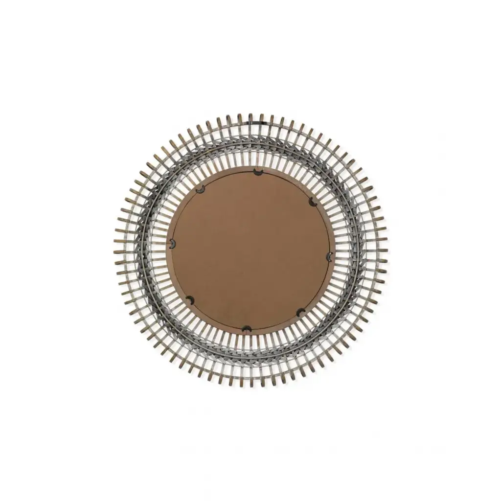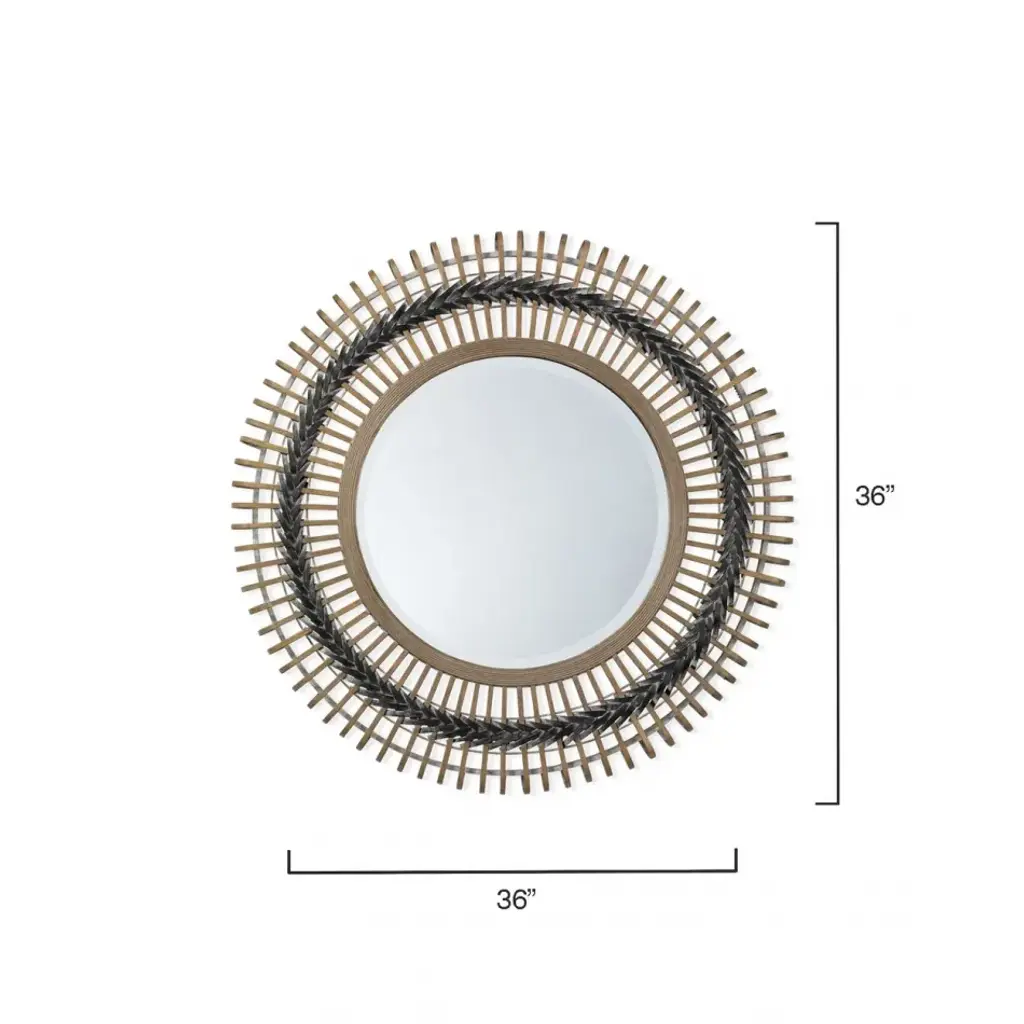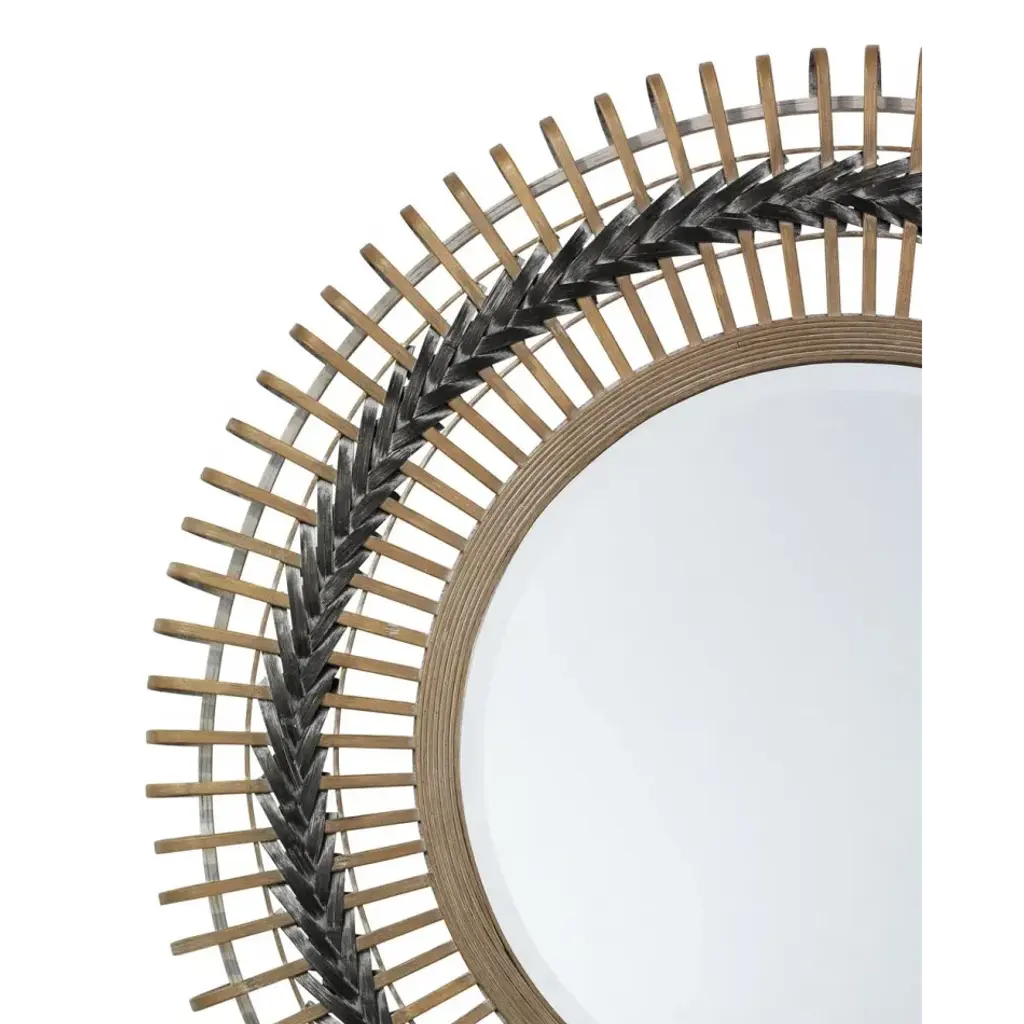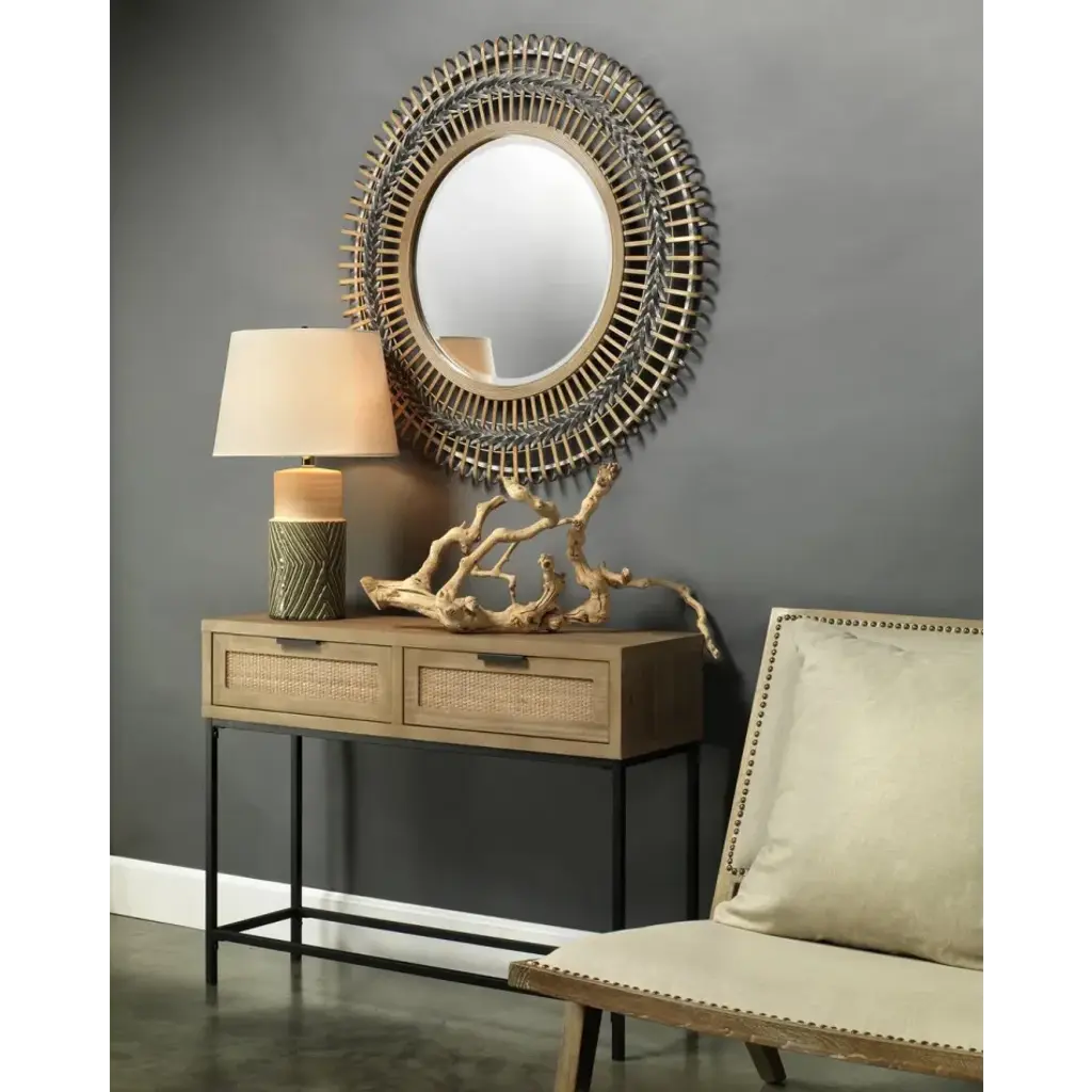 Create a focal point on your wall with this striking bamboo accent mirror. Artisans expertly intertwine grey and natural bamboo to create a light and airy design. Mounted above a vanity, sideboard or dresser, its round shape will soften any room while reflecting light to make your space feel bigger.