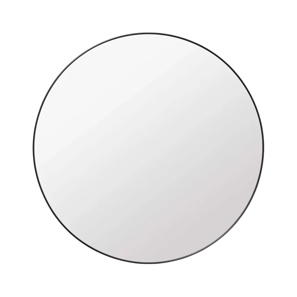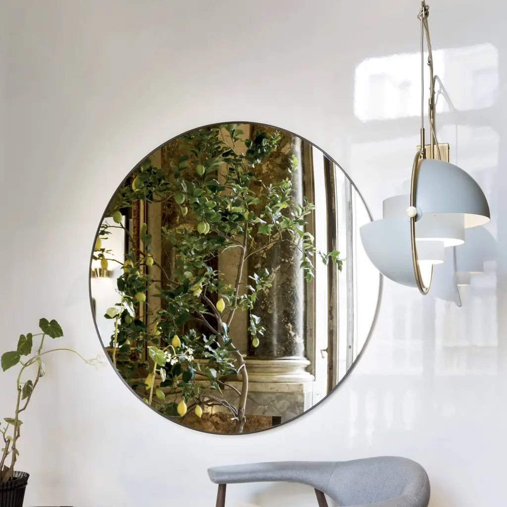 Emphatically over scaled, Gubi's rendition of the elemental round mirror brings a captivating depth and dimension to any room. On a warming note, the classic rounded shape is framed with a tracing of solid brass to modulate its presence and enhance the gleaming reflection.