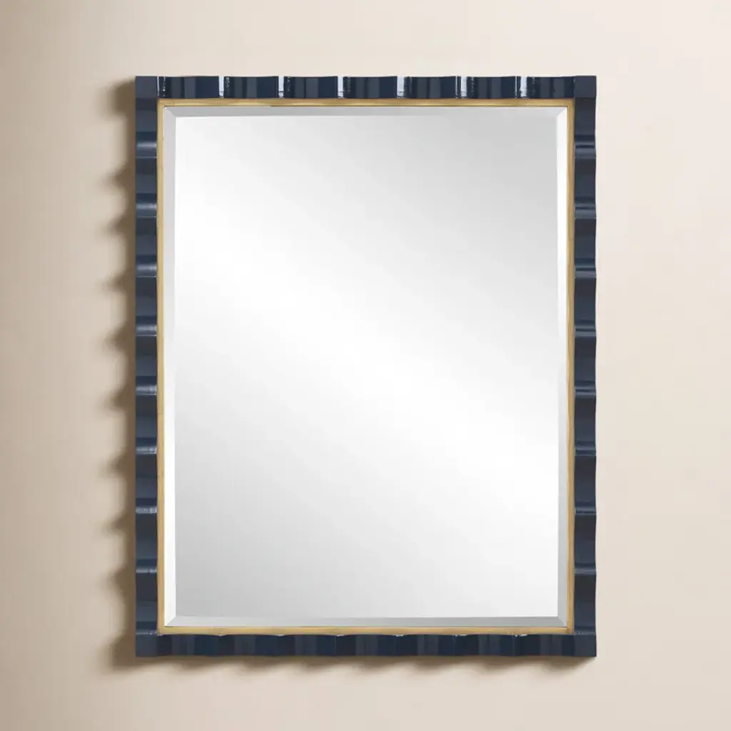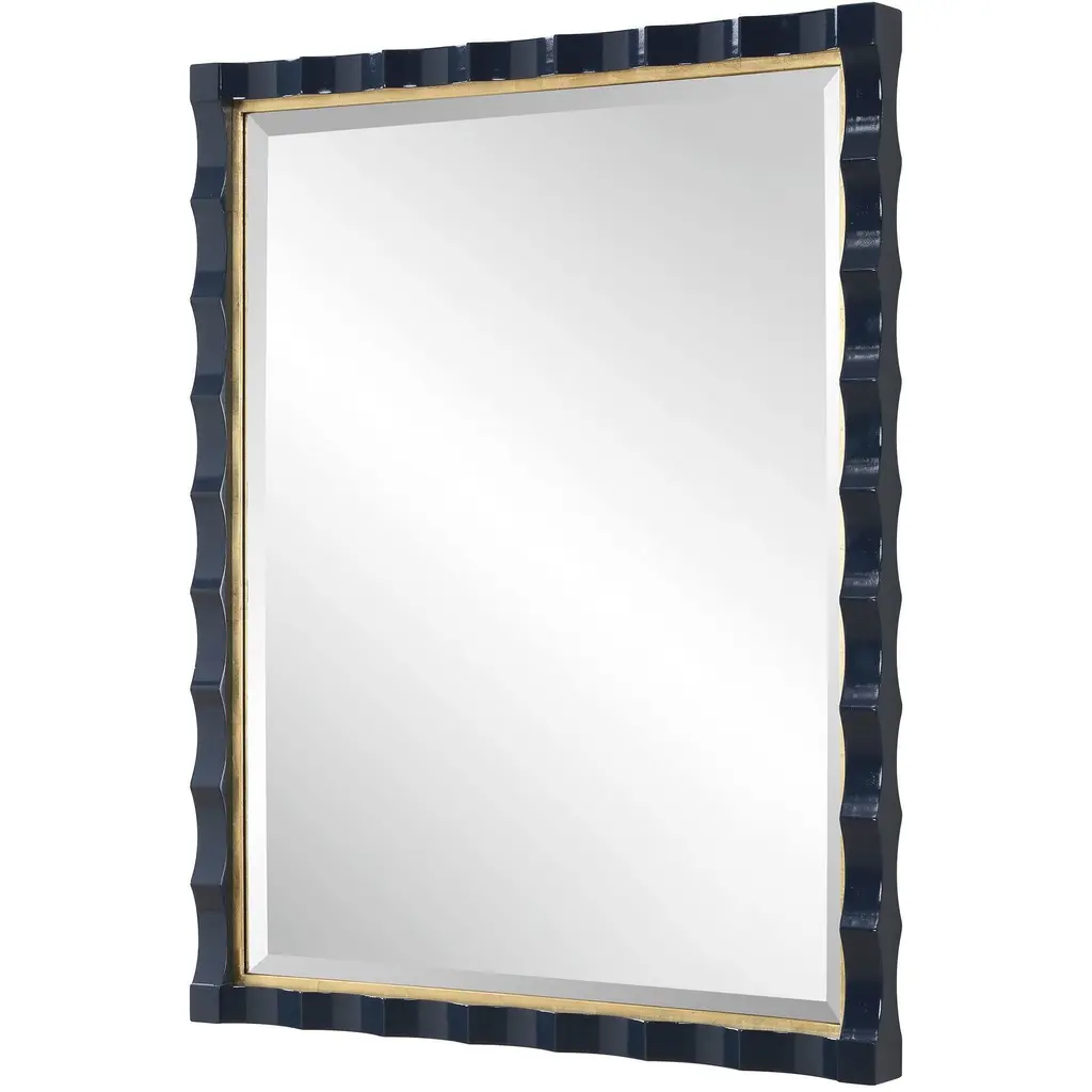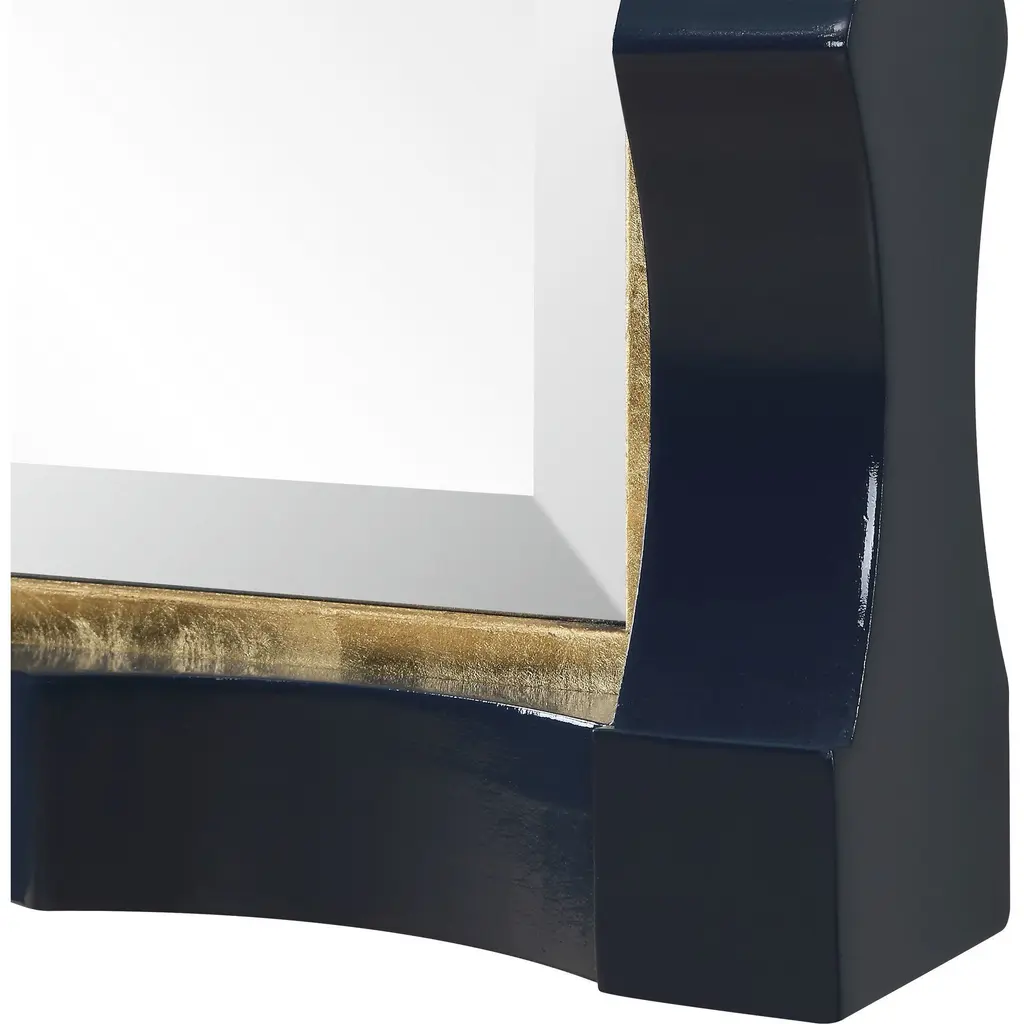 Elegantly Designed With A Scalloped Edge And A Stunning Gold Leaf Inner Liner, This Piece Is Beautifully Finished In A Rich, High-gloss Navy Lacquer. Perfect For Adding A Touch Of Luxury And Depth To Any Room, The Gulf Mirror Blends Classic Charm With A Modern Twist. A Generous 1" Bevel Is Added To This Piece, Which May Be Hung Horizontal Or Vertical.