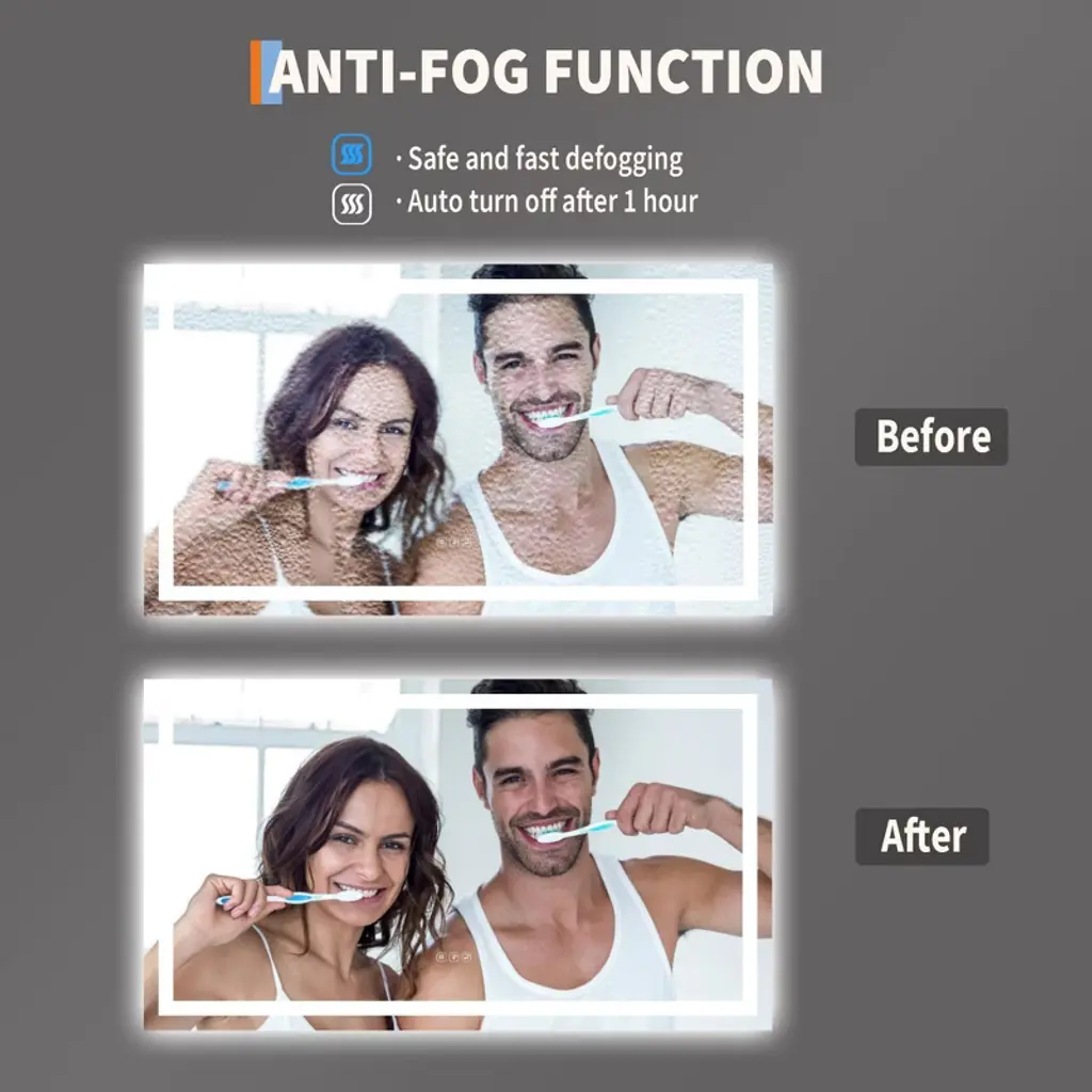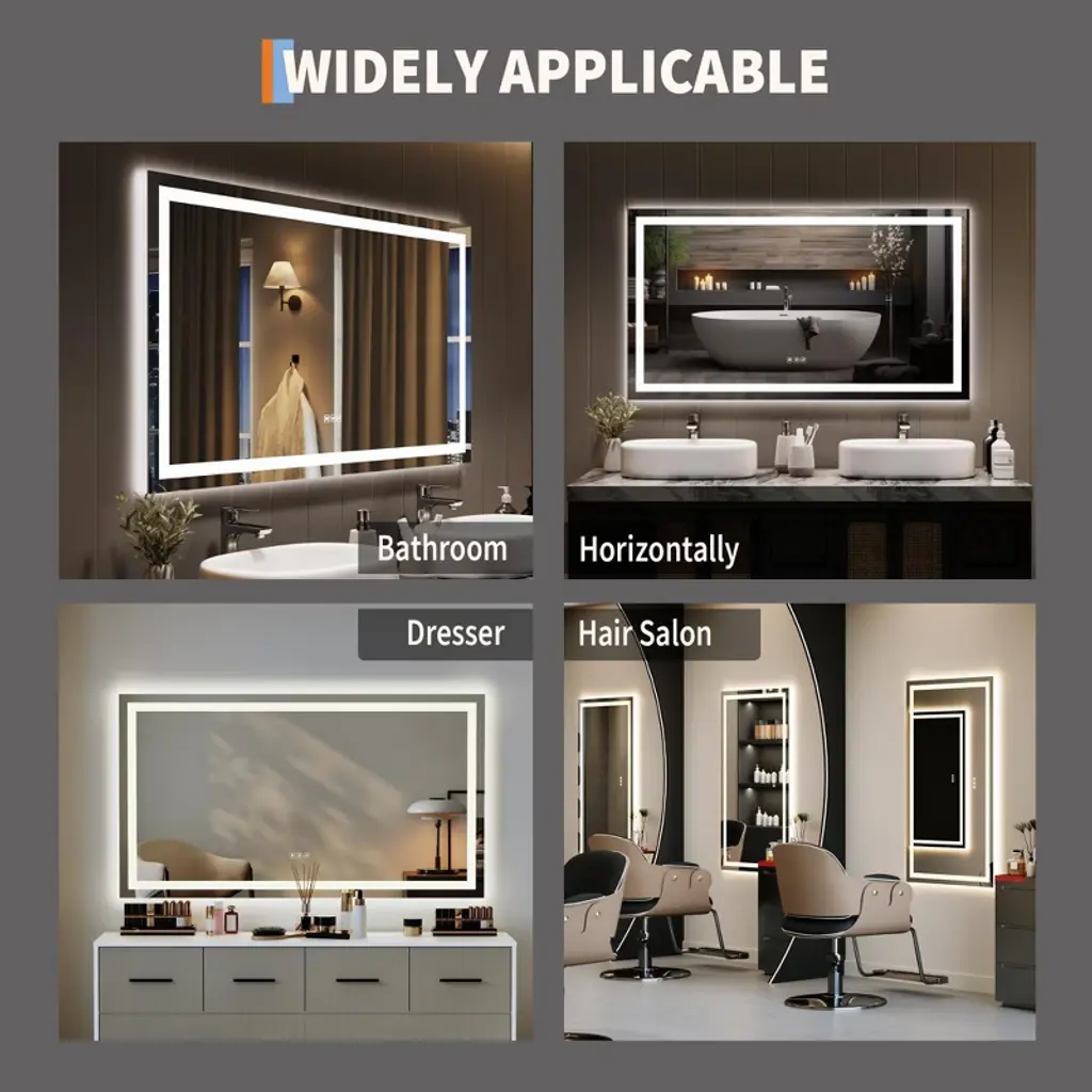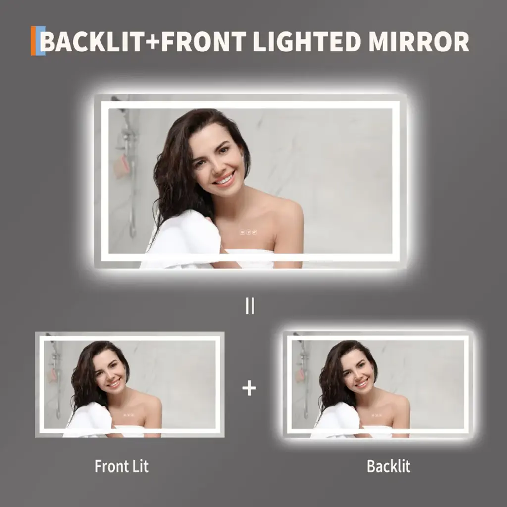 Gustowave Large Led Bathroom Mirror With Memory, Anti-fog, Shatter-proof, Lighted Bathroom Vanity Mirror For Wall, 50x28 In