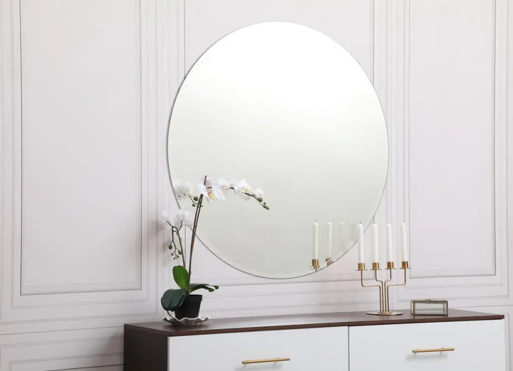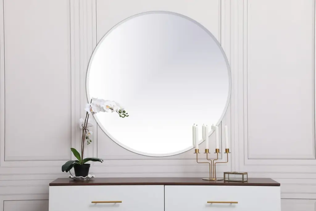 Enhance the appeal of your home or office with this contemporary mirror, slightly antiqued, featuring a thin rounded metal edges in a deep profile, reflecting a minimalist''s design and trendy styling. To ensure your home safety, we use a metal hanger ring that are securely welded to the back of the metal frame , which sit on top of the frame for easy hanging. We recommend using suitable heavy duty picture/mirror hooks, selecting the best type of fixing for the particular wall you wish to hang the mirror on, using the appropriate rawl plug if required.this simple mirror measures 42 inches and is the perfect size for a bathroom mirror or any accent mirror for your homepolished edge mirrorcomes with two metal insets for easy wall installationframeless streamline lookcomplements to any decorbeveled glass adds a touch of softness to the overall look