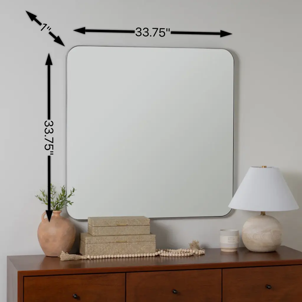 The beautiful Hailey Square wall mirror features intricate details and a modern look. This piece is sure to add a statement to a space of any style!Glass Dimensions: 33.50x33.50Hangs Both Ways: NoBeveled: NoUse Case: Commercially Approved, Outdoor/Damp-rated.Installation: Ready-to-hang with included, D-Ring Hangers.Details: Hand-crafted Frame, Hand-crafted FinishCare: Wipe Clean with a damp, microfiber cloth.Policy: Limited, 6-Month Manufacturer Warranty