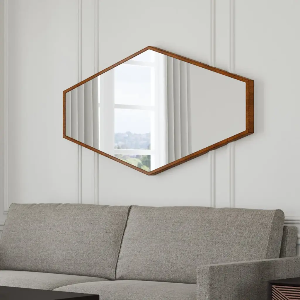 The Haines Wall Mirror features a modern design and luxurious gold leaf finish, this hexagonal piece adds a touch of sophistication to any space. Crafted with attention to detail, it effortlessly combines elegance with simplicity, making it a timeless addition to your decor. Elevate your space with the modern and refined allure of this stunning piece.Features:Hexagonal piece with gold leaf finish.Embodies modern elegance and refined simplicity.Crafted with attention to detail for timeless appeal.Elevate your space effortlessly with its sophisticated allure.Equipped with D ring hangers for easy wall mountingFor over a century, Bassett Mirror has been synonymous with style and quality, transforming homes with its sophisticated and timeless designs. With a wide-ranging collection of furniture, lighting, mirrors, and art, Bassett Mirror seamlessly blends modern style with classic appeal. From rustic modern to luxe glam, each piece is thoughtfully crafted to inspire and elevate any space. Committed to exceptional value and customer care, Bassett Mirror makes it easy for homeowners to create beautiful, personalized interiors with confidence.