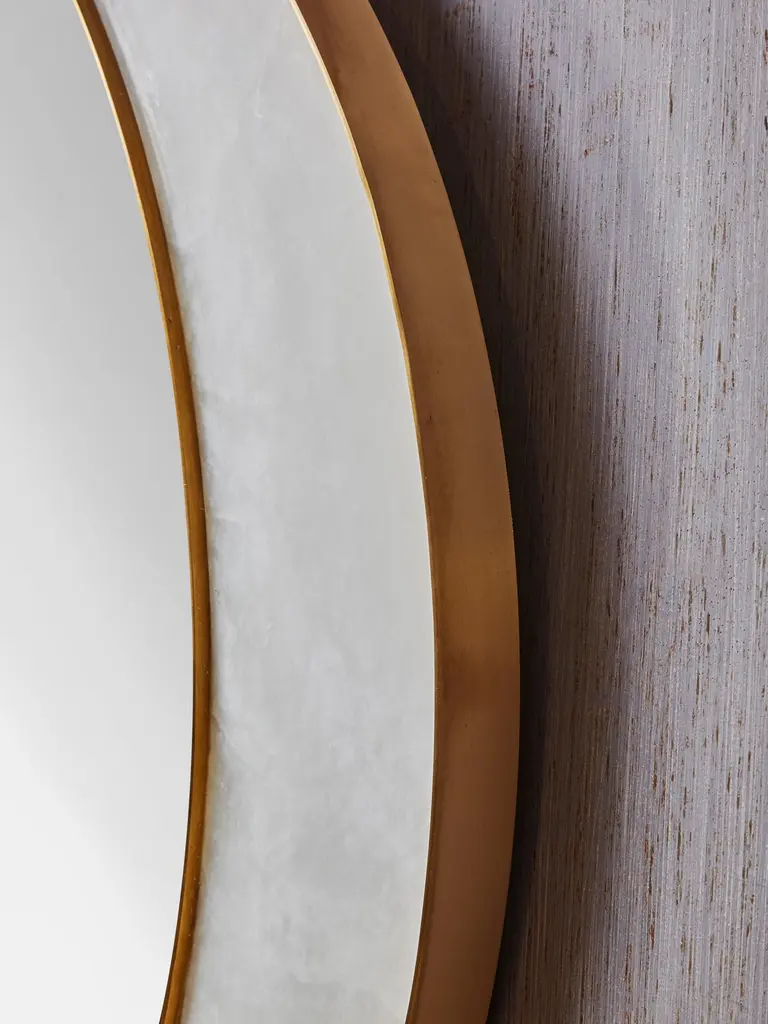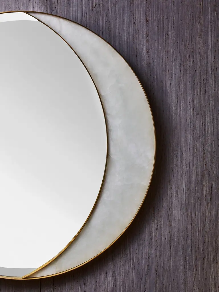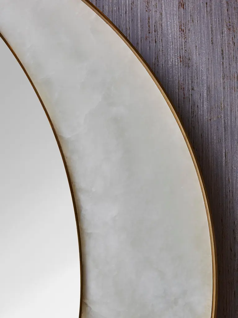 "Half Moon" mirror in brass and alabaster by Studio Glustin.
