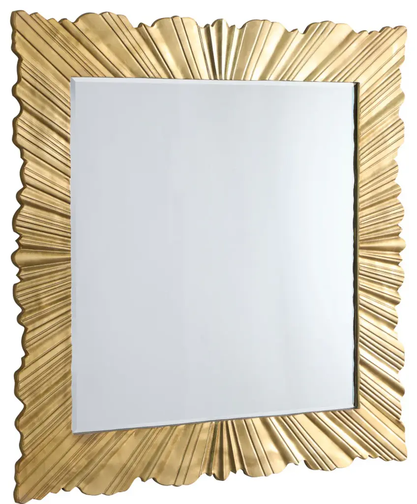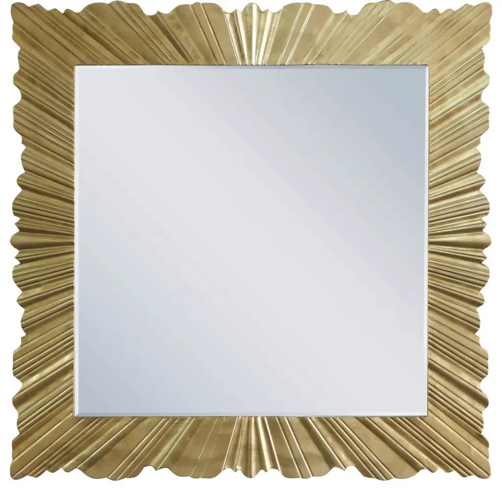Garner the attention your wall craves with this Golda mirror features a brilliant gold leaf finish. This mirror''s frame features a bold carved starburst design to draw instant visual focus to your wall, no matter where you choose to display it. This eye-grabbing mirror is carved by hand for a luxe look and fits in perfectly in any modern decorative setting. The Golda mirror is made from wood for lasting beauty and ongoing enjoyment.Overall Product Dimensions: 42" W x 1.5" D x 42" HGold Leaf FinishIntricate Hand Carved Starburst LookContemporary Design
