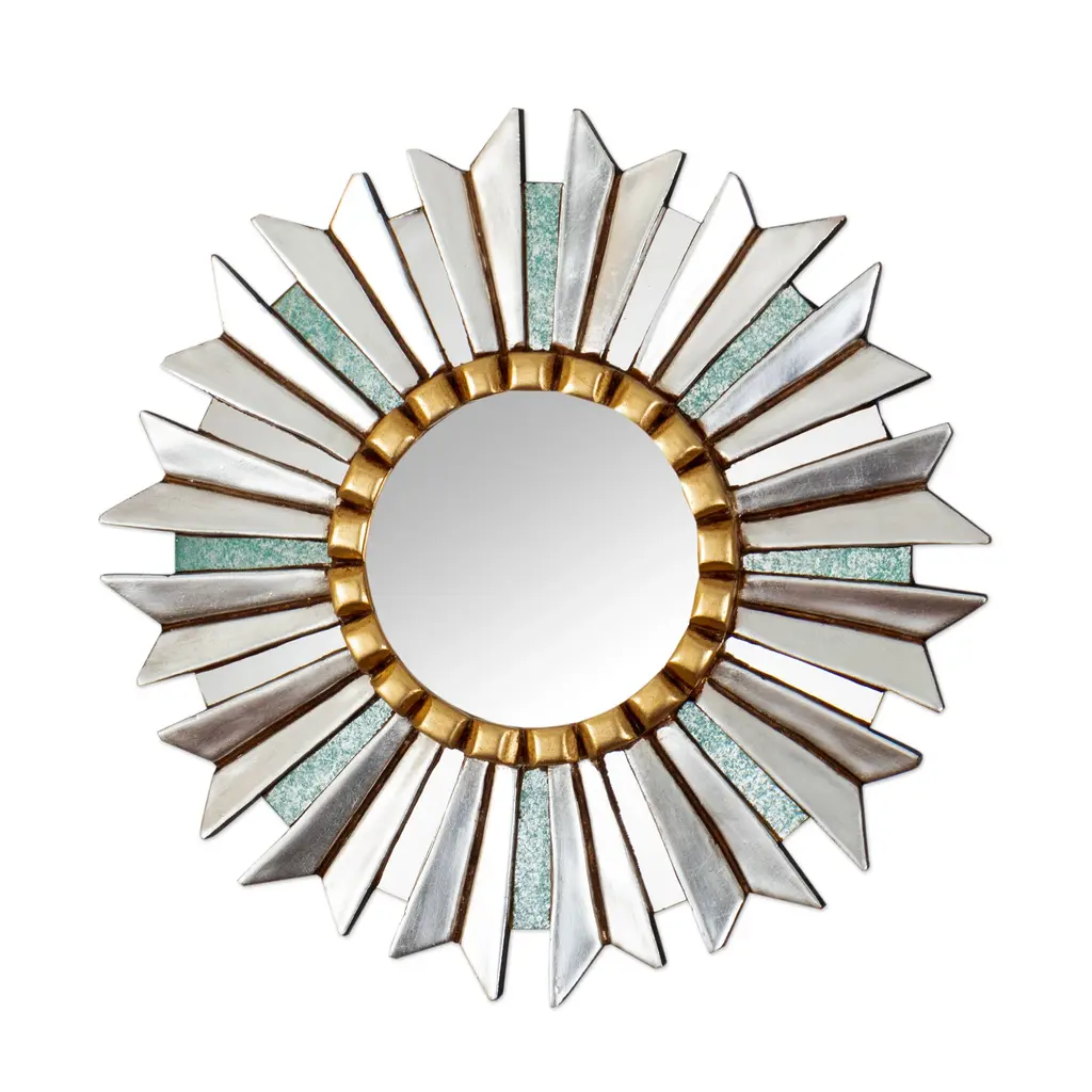 Handcrafted Aluminum And Bronze Wall Mirror From Peru- Lunar Blessing