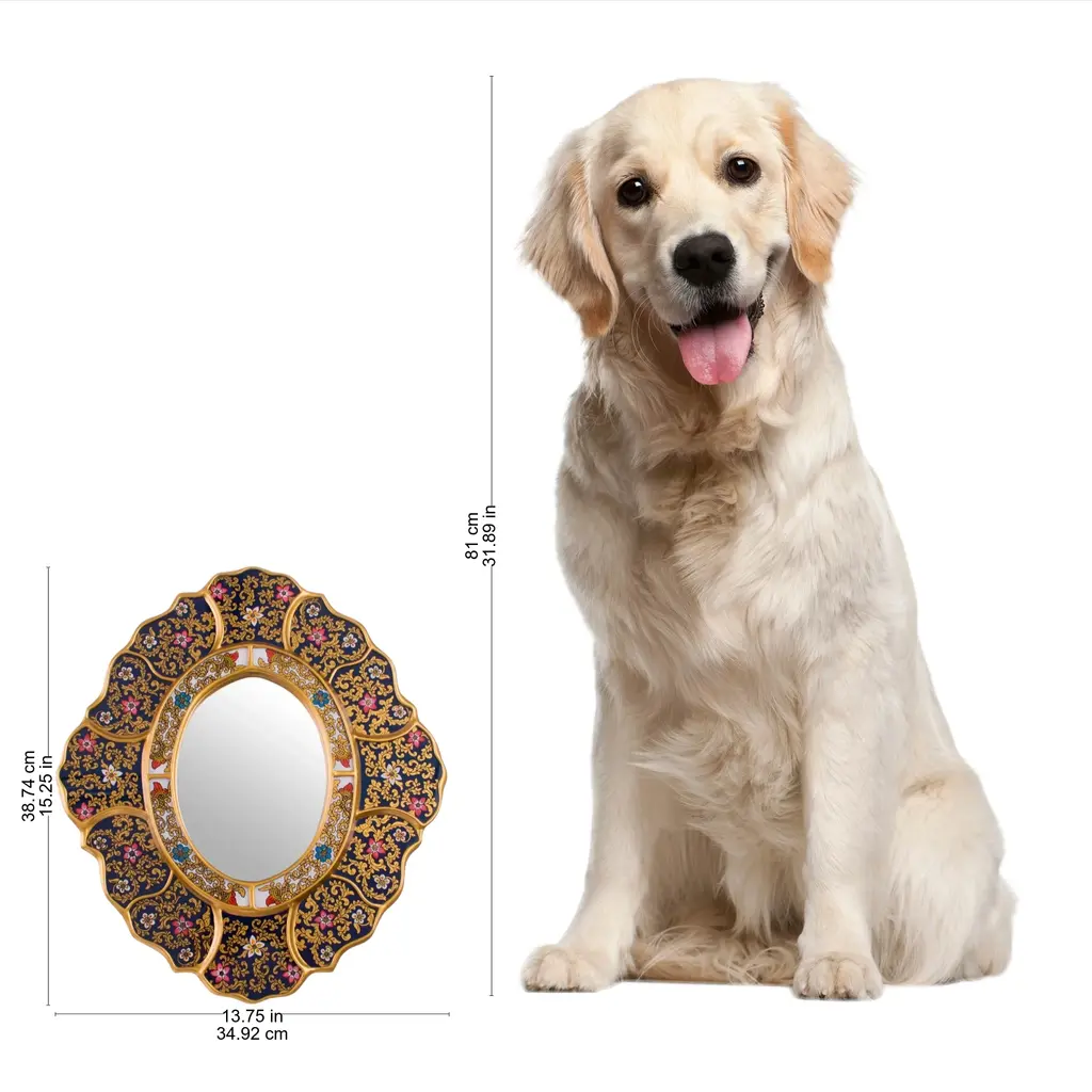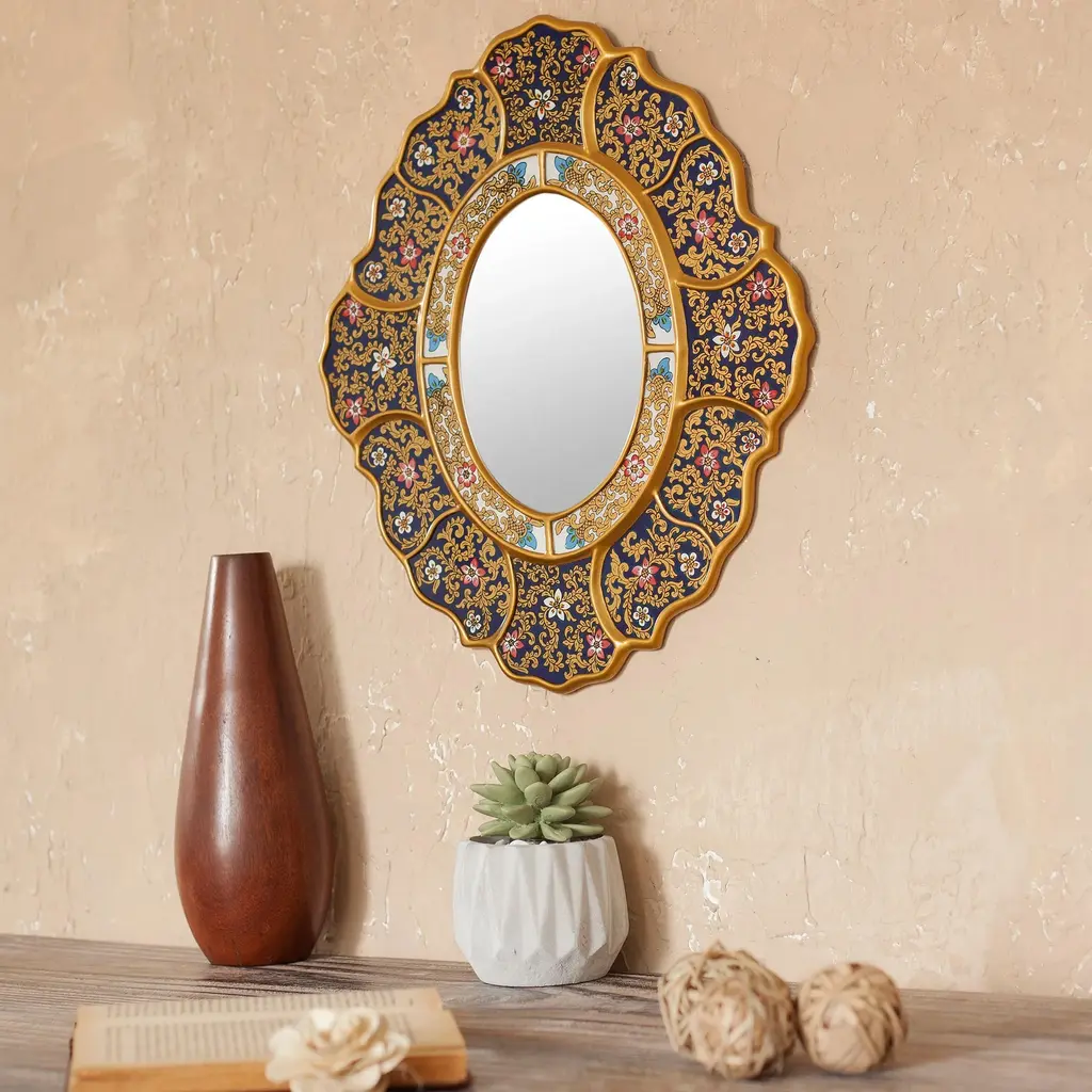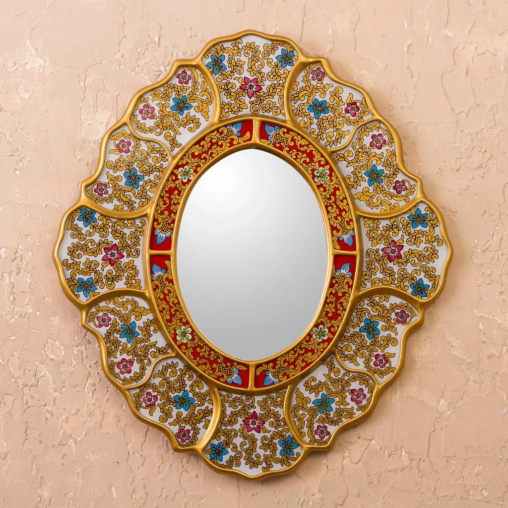 Handcrafted Andean Reverse Painted Glass Wall Mirror- Garden Gold