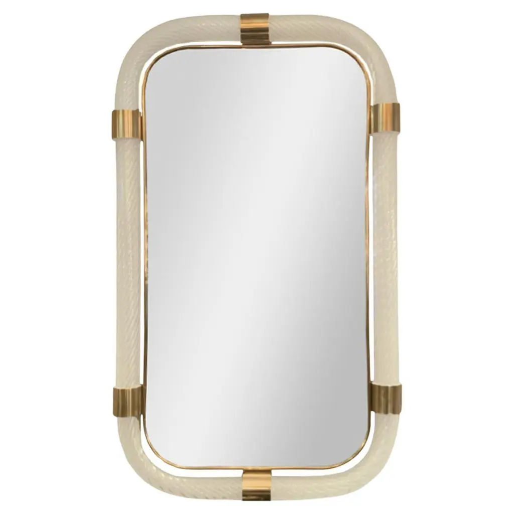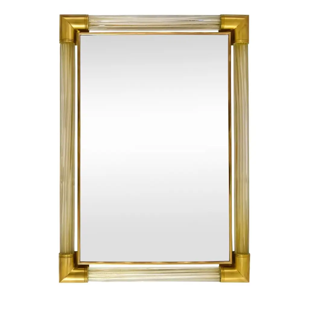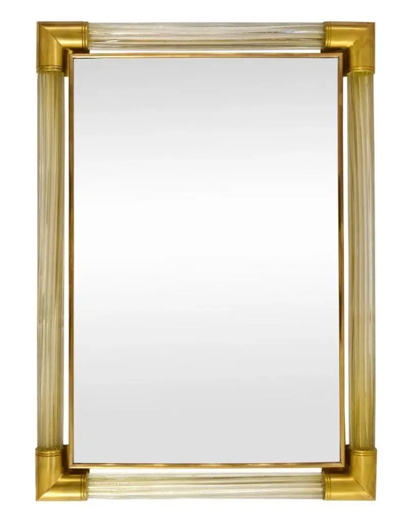 Handcrafted Rectangular Mirror In Murano Glass And Brass By Bottega Veneziana