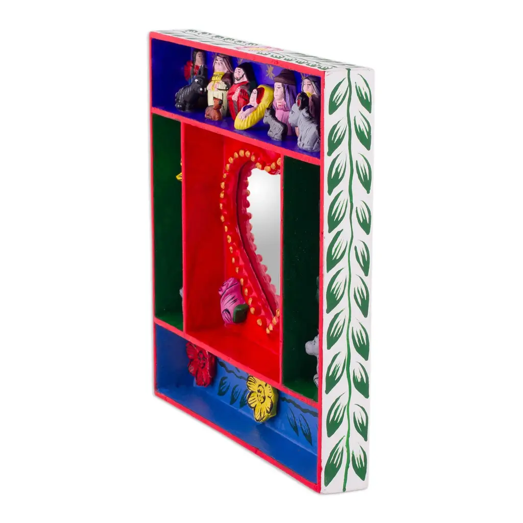 Handcrafted Retablo Nativity Scene Wall Mirror From Peru- Love Divine