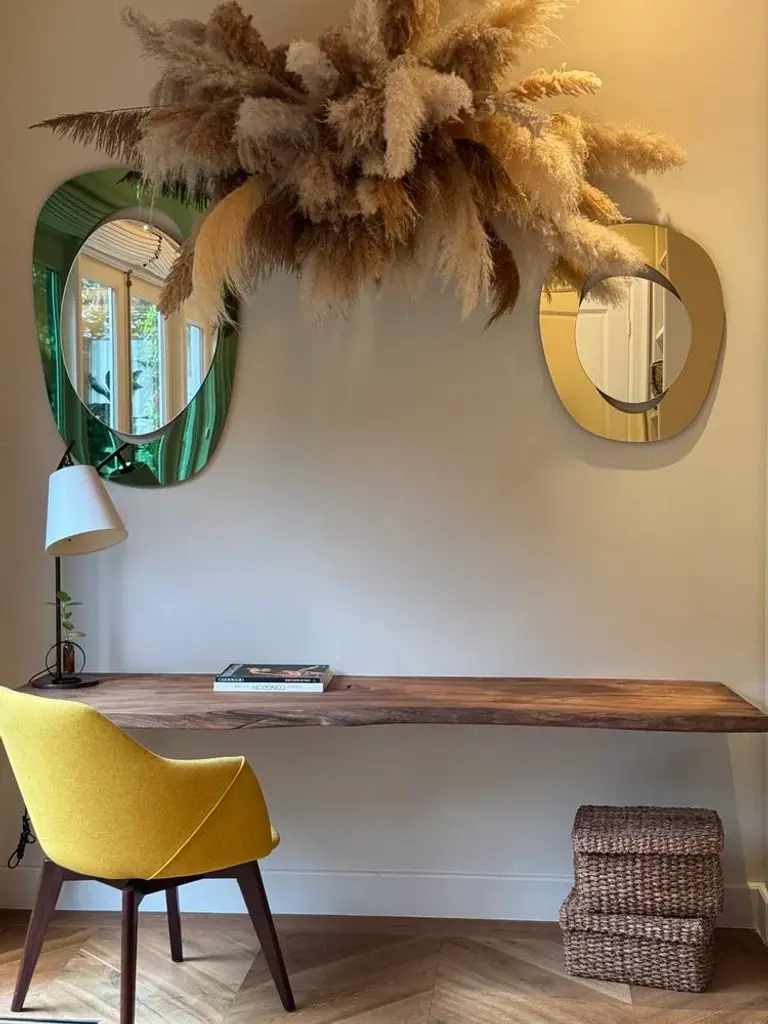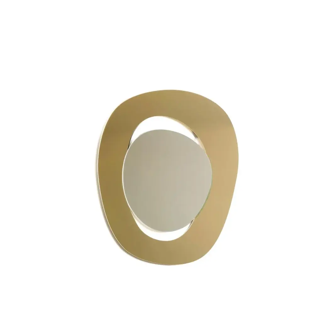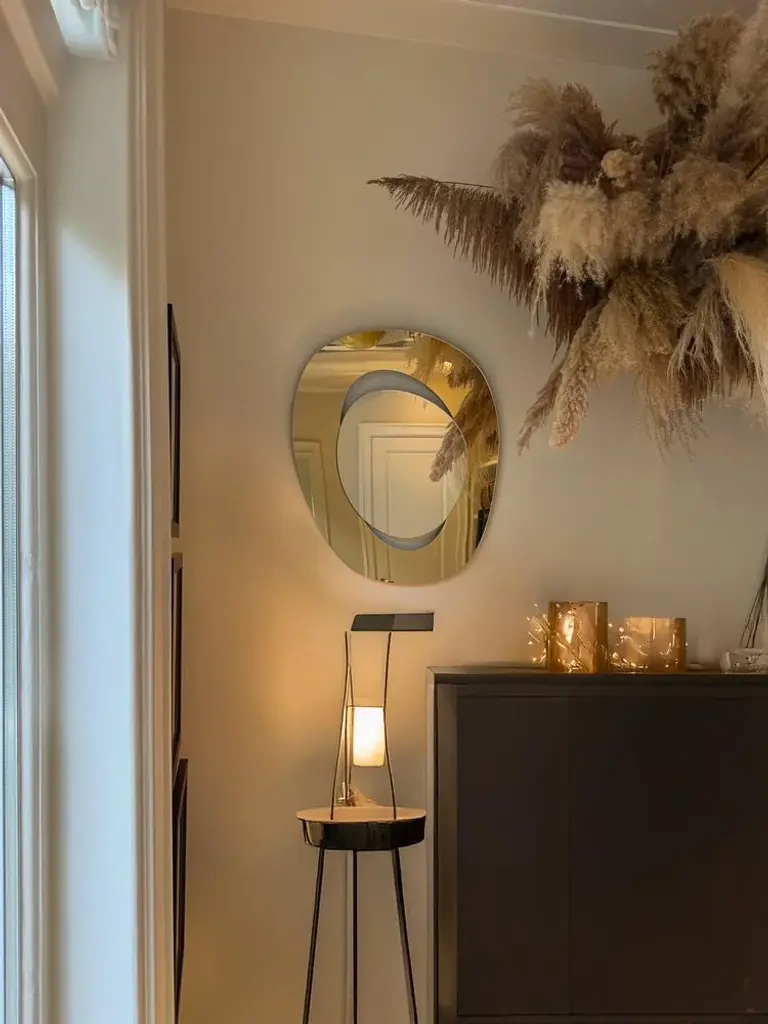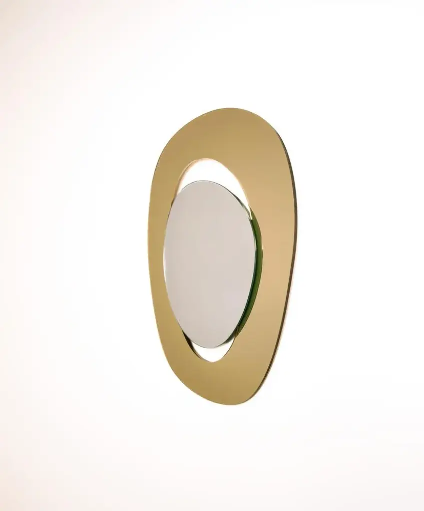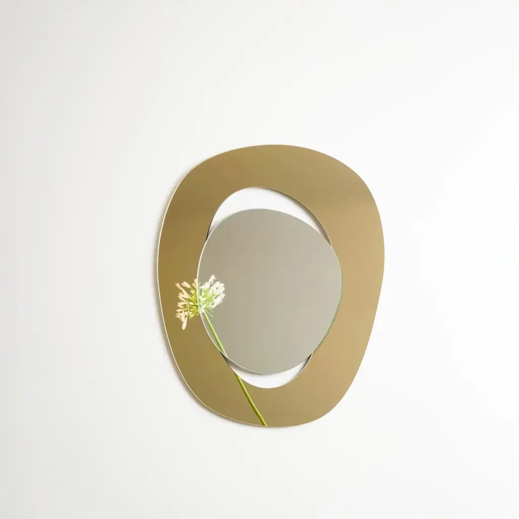 Depth we embrace dreams and self-belief, and each mirror captures the essence of transformation and possibility. Designed to enhance your space, these mirrors also inspire joy and connection. With these mirrors, you can feel the warmth of sunlit afternoons spent laughing with friends over gelato, celebrating life's special moments, and cherishing intimate gatherings around the dinner table. key features minimalist design: embraces simplicity with clean lines, sleek materials, and thoughtful proportions that bring peace and clarity to any space.iconic structure: the mirror features a hand-cut silver glass that ‘floats’ within an edgeless frame made from 100% recycled acrylic gold mirror, achieving a mesmerising levitating effect that carries the weight of tradition yet feels light. mirrors are produced in limited edition. Only a select few will have the opportunity to own this extraordinary piece of art. technical information please kindly note the colour of the mirror in the photos varies depending on the light. Each mirror is signed at the back. signed by maker