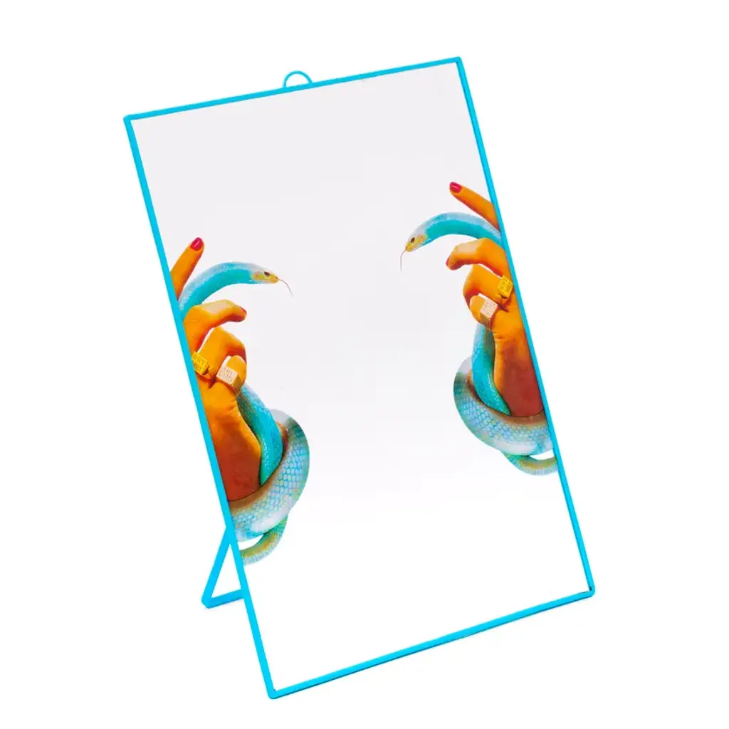 Hands with snakes is a mirror with a plastic frame.When a dreamlike and surreal world is just a reflection away, there's no room for any Narcissus! Halfway between a mirror and a painting, the Plastic Mirrors will open the door of the surreal world designed by Toiletpaper.