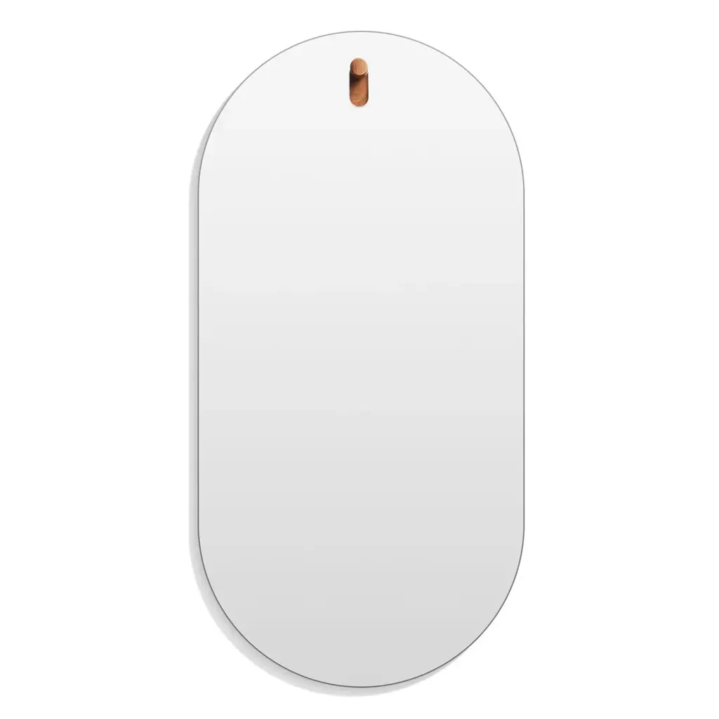 Hang 1 Drop Mirror in your entry. Hang 1 in your bathroom. Hang 1 in your bedroom. You get the idea. Smooth, radius-edged modern mirror mounts on a playful solid walnut peg. Available in eight shapes.