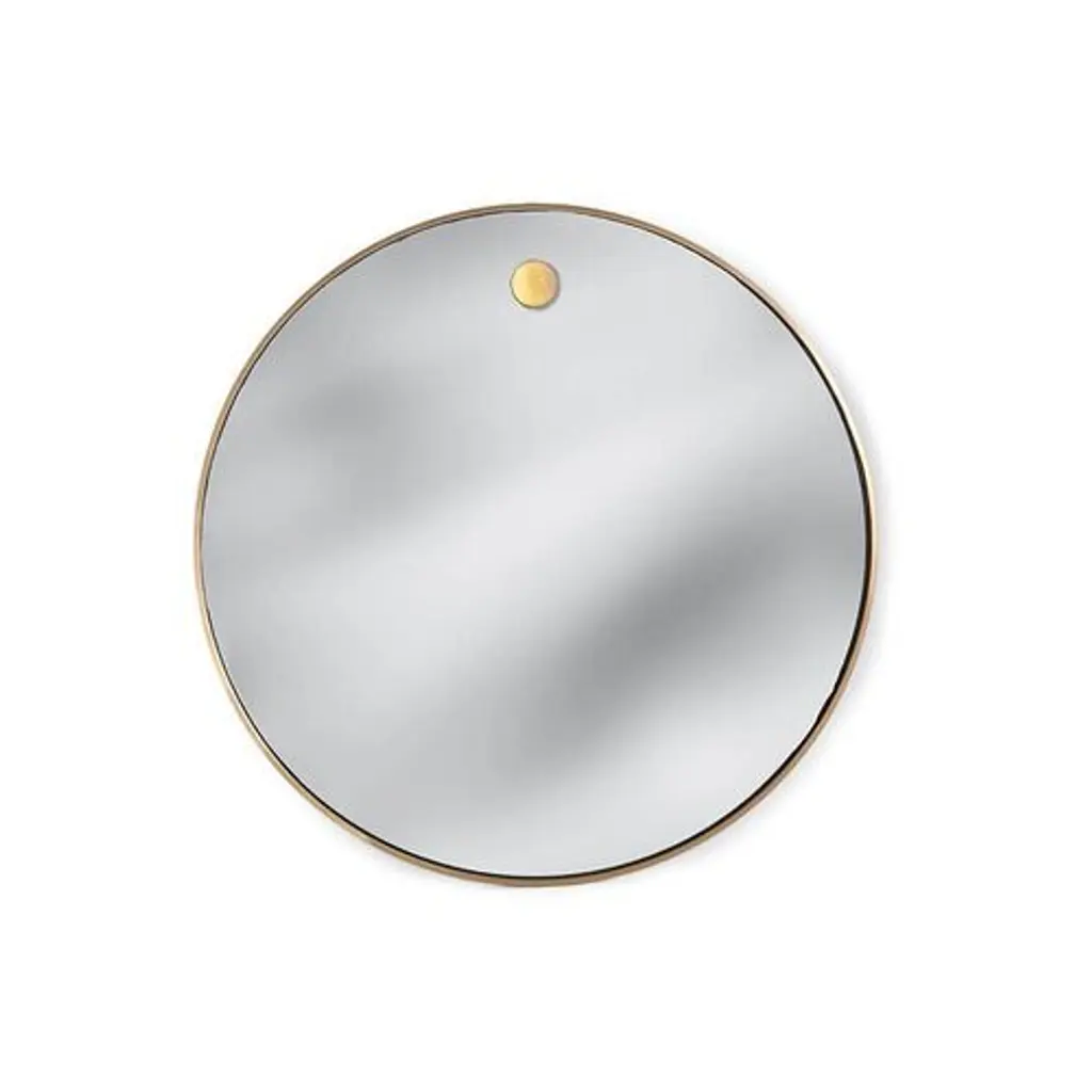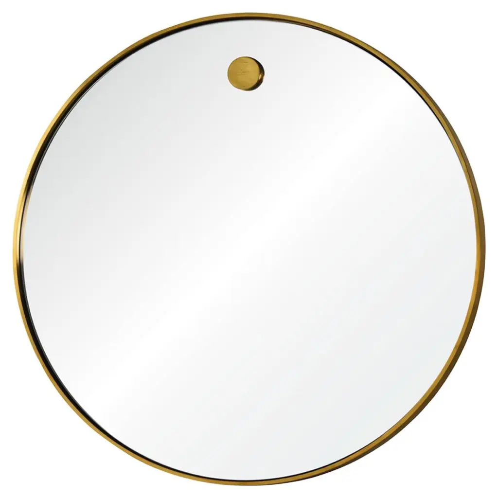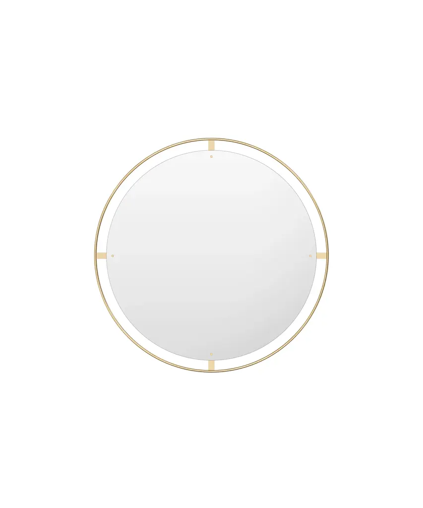 A classic piece perfect for any room, this round wall mirror is framed in steel with a gleaming brass finish.