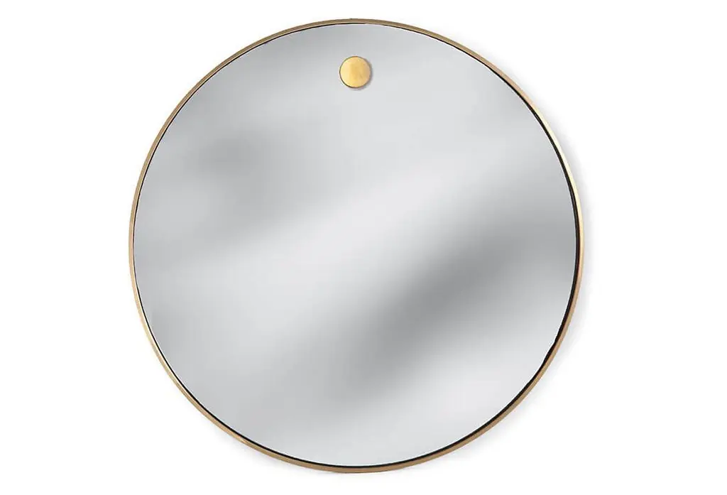 Hanging Circular Wall Mirror, Brass