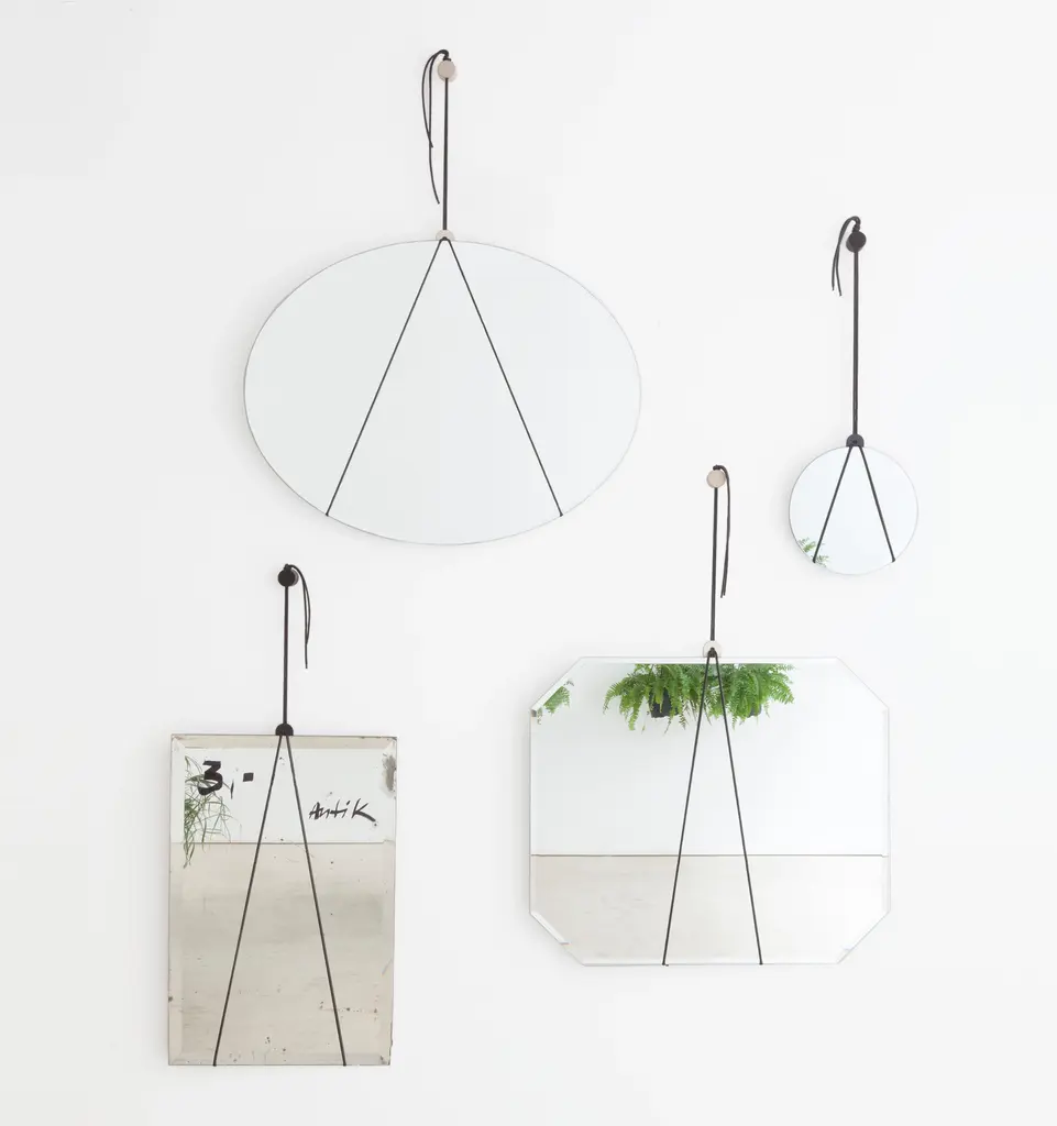 Discover hidden reserves – explore your attics, examine your basements and collect all glass that reflects – Llot Llov is on a mission to reanimate every single ancient mirror that lies around. Through Hank abandoned mirrors regain their place on the wall. The product itself consists of a harness made of waxed cotton rope, a wooden knob and a small aluminium plate. The rope is set up in a v-shape and adjusted by the plate, which sits on the mirror’s upper edge. Here the ropes merge and lead to the wooden knob that holds the minimalist installation parallel to the wall. This knob needs just one drill hole to be fastened and with its reduced parts, Hank is clever and light. The set comes in two versions that cover every size and shape.