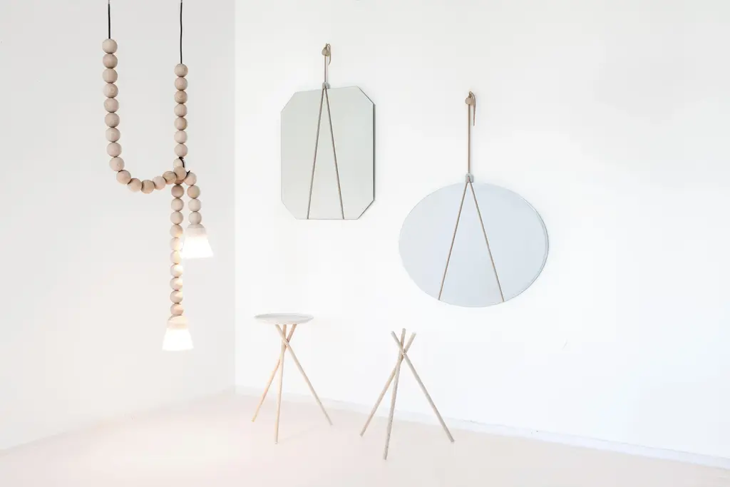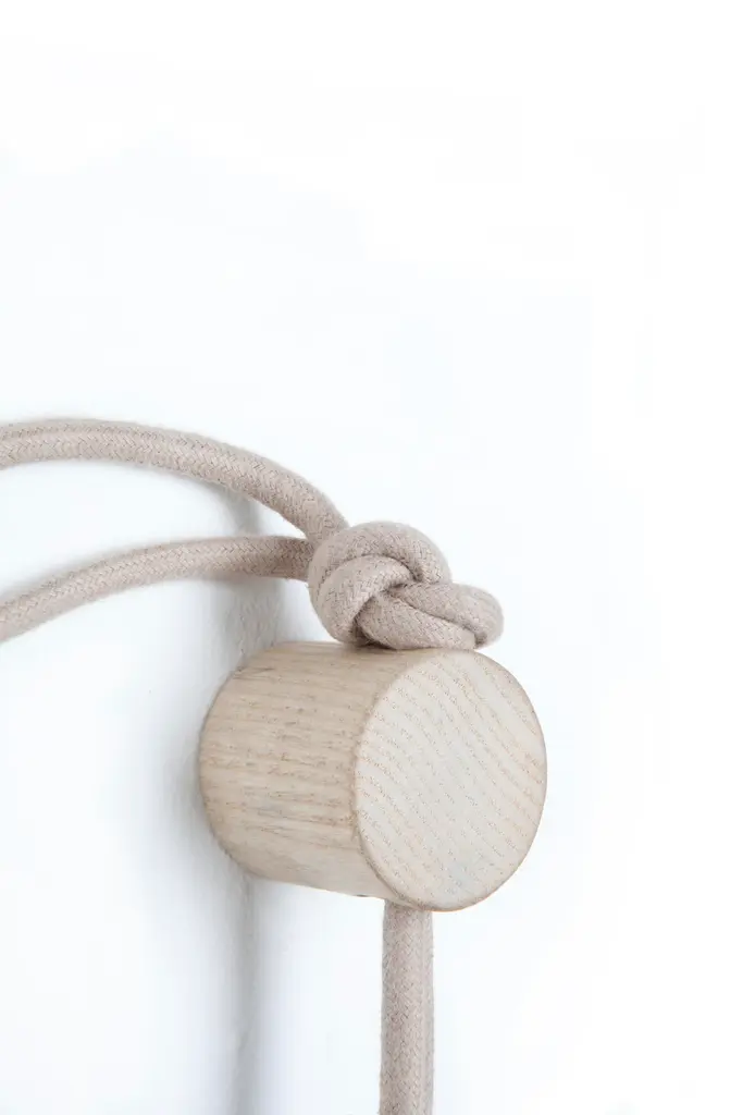 Discover hidden reserves – explore your attics, examine your basements and collect all glass that reflects – Llot Llov is on a mission to reanimate every single ancient mirror that lies around. Through Hank abandoned mirrors regain their place on the wall. The product itself consists of a harness made of waxed cotton rope, a wooden knob and a small aluminium plate. The rope is set up in a v-shape and adjusted by the plate, which sits on the mirror’s upper edge. Here the ropes merge and lead to the wooden knob that holds the minimalist installation parallel to the wall. Overall height is approx. 122 cm. This knob needs just one drill hole to be fastened and with its reduced parts, Hank is clever and light. The set comes in two versions that cover every size and shape.