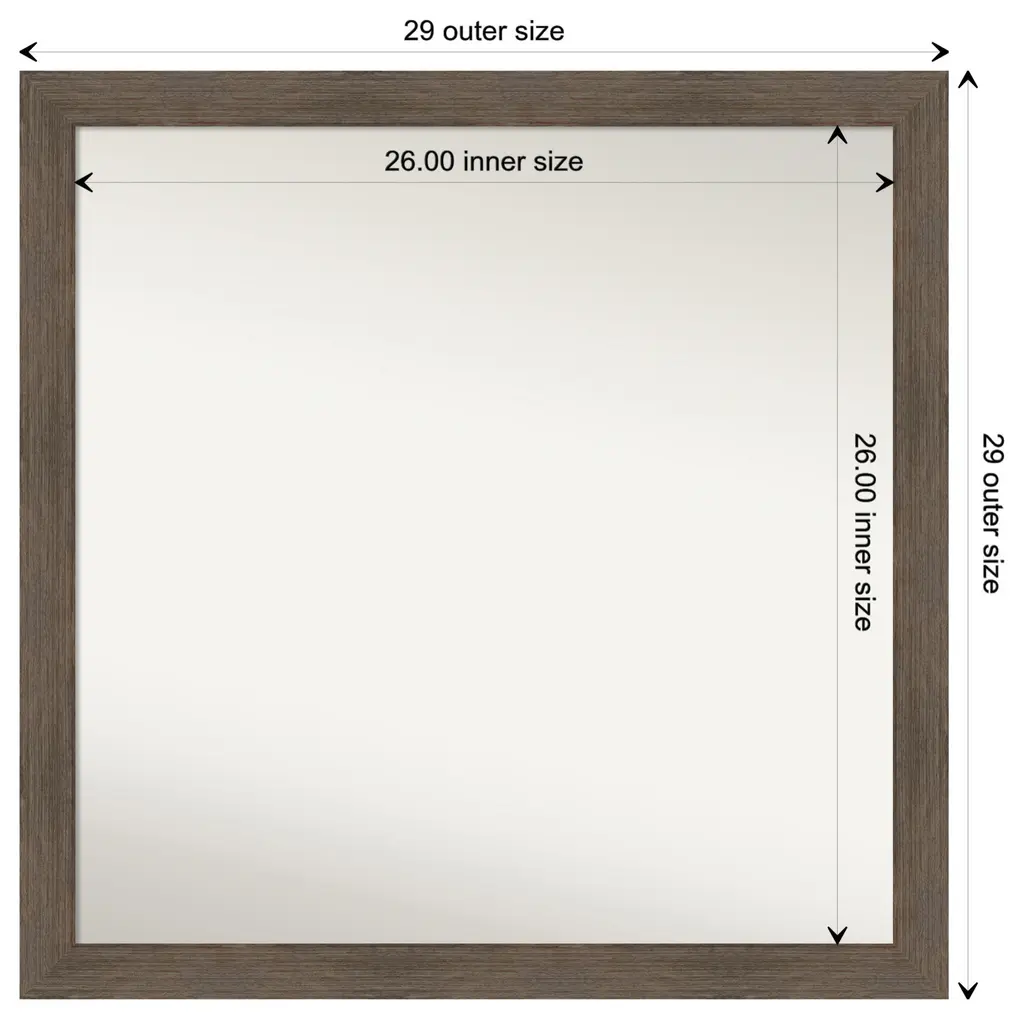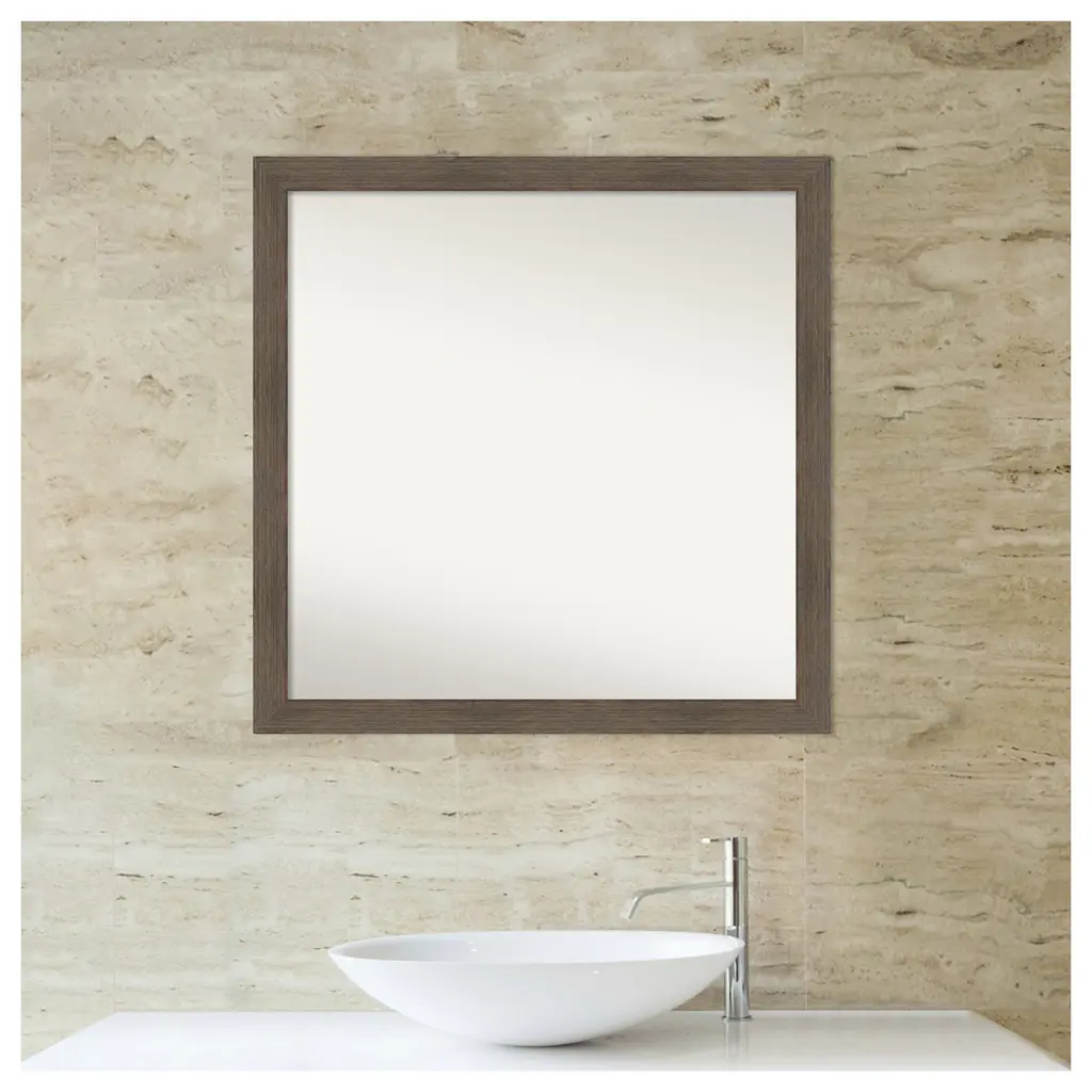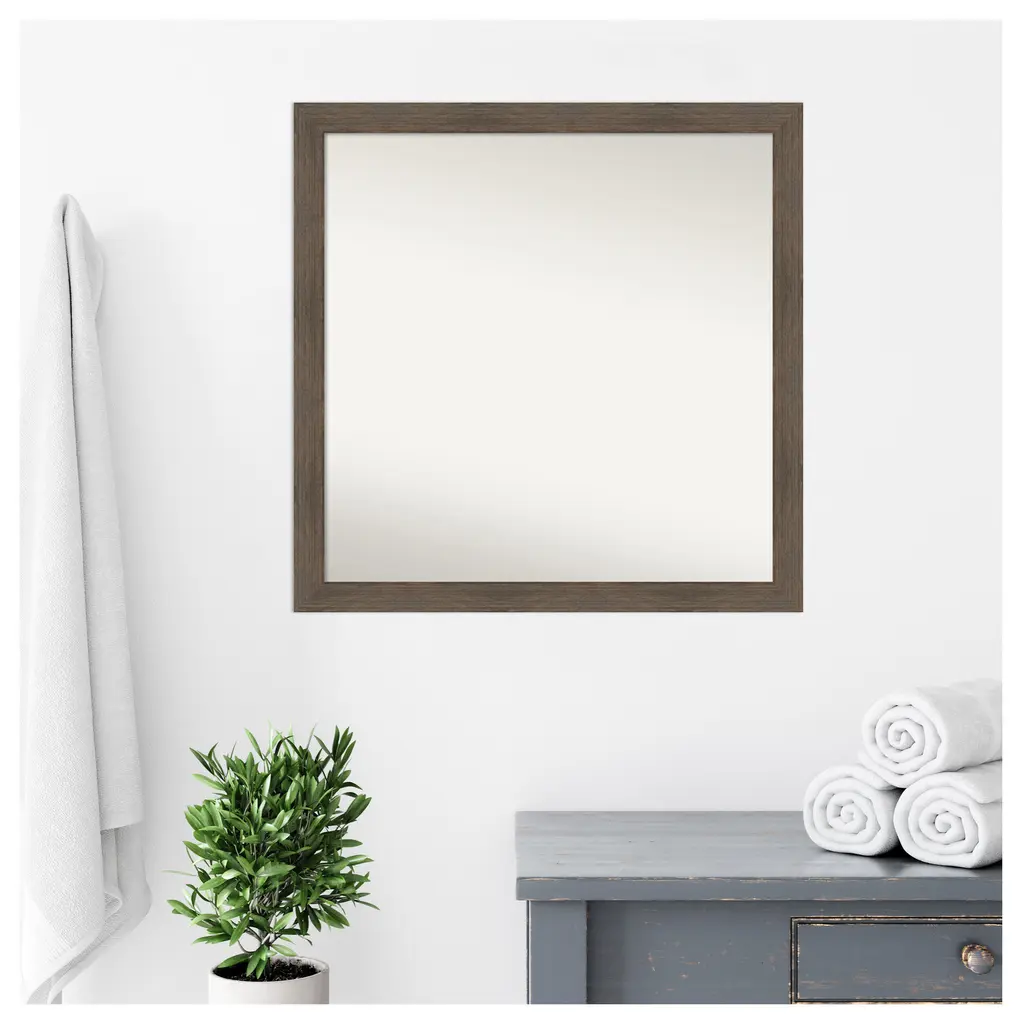 Hardwood Mocha Narrow Non-Beveled Wood Bathroom Mirror 29x29"