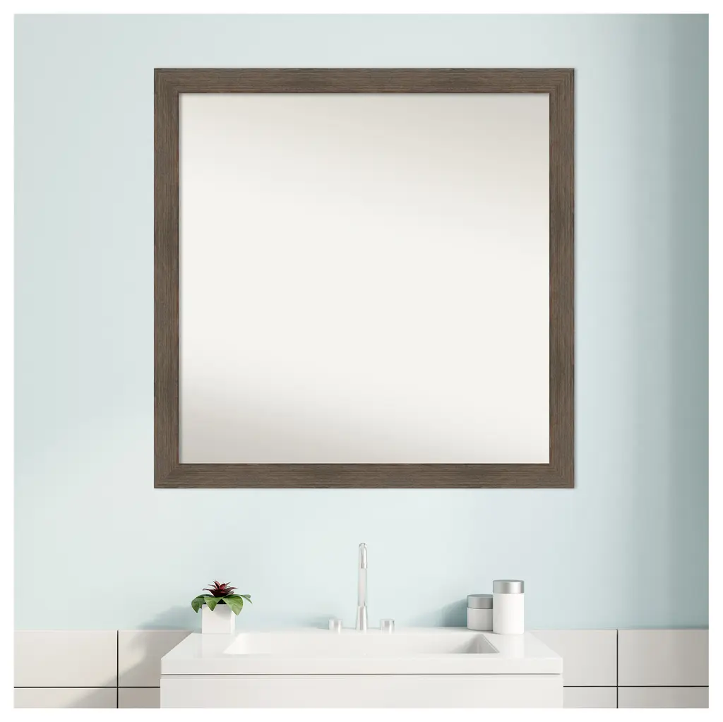 Give your bathroom the finishing touch with this 100% real wood Non-Beveled Wall Mirror framed with the Hardwood Mocha Narrow frame. Individually made using traditional custom framing techniques, it has the quality you would expect from your local frame shop. It holds its value with premium finishing that can be appreciated up close.Features:MIRROR DETAILS: This mirror features premium glass for a clear, undistorted image and has a non-beveled surface to maximize the viewing area.WOOD FRAME DETAILS: The Hardwood Mocha Narrow Frame is a striking frame with a classy solid wood finish of mocha brown and a flat surface. The frame is 1.75 in. wide and stands 0.75 in. off the wall.PROTECTIVE BACKING: This wall mirror is finished with a solid surface backing to ensure stability and prevent moisture and dust buildup.HASSLE-FREE HANGING: All mirrors have durable hanging hardware attached to the back to hang vertically or horizontally, along with hanging hooks and nails.ASSEMBLED IN THE USA: Each piece is assembled to order in Madison, WI USA.FOR HOME OR COMMERCIAL USE: Because of our attention to detail and focus on artistry, architects, interior designers, and homeowners alike choose this mirror to create beautiful living spaces.