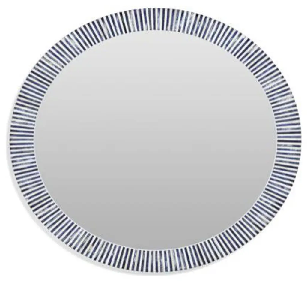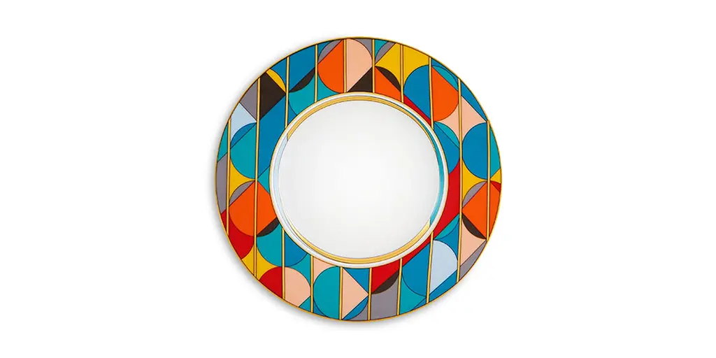 Featuring back-painted glass panes recessed between a generous, double-banded brass frame, our Harlequin Round Mirror is the ultimate expression of Modern American Glamour. Muted, sunrise-inspired hues hit all the right notes—colorful yet quiet, edgy yet soft—while bold and brilliant blues balance a little Italian Modern with a lot of irresistible pop. A minimalist form with maximalist presence—it's fabulously futuristic in your foyer or perfectly powerful in your powder room.