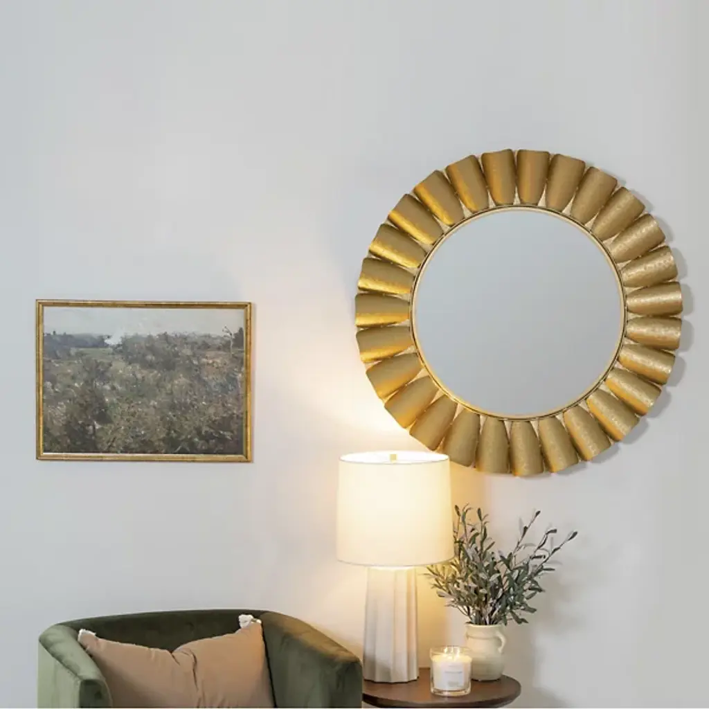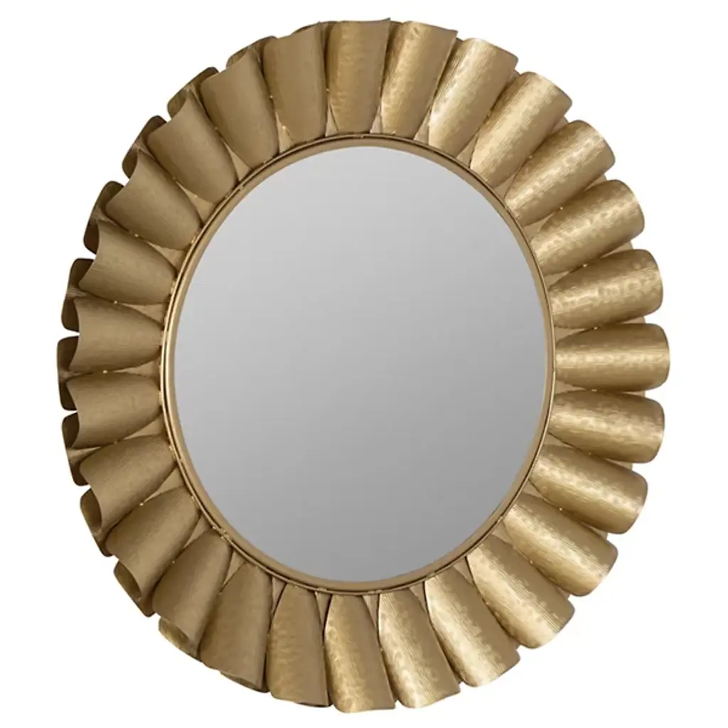Reflect on your surroundings with the Harlow Wall Mirror from Cooper Classics. This eye-catching piece features a gold-finished metal frame that evokes the elegance of stylized petals. Perfect for vertical mounting, it matches rustic charm with contemporary sophistication, making it an ideal accent for living rooms, bedrooms, or entryways. A stunning way to reflect your style!