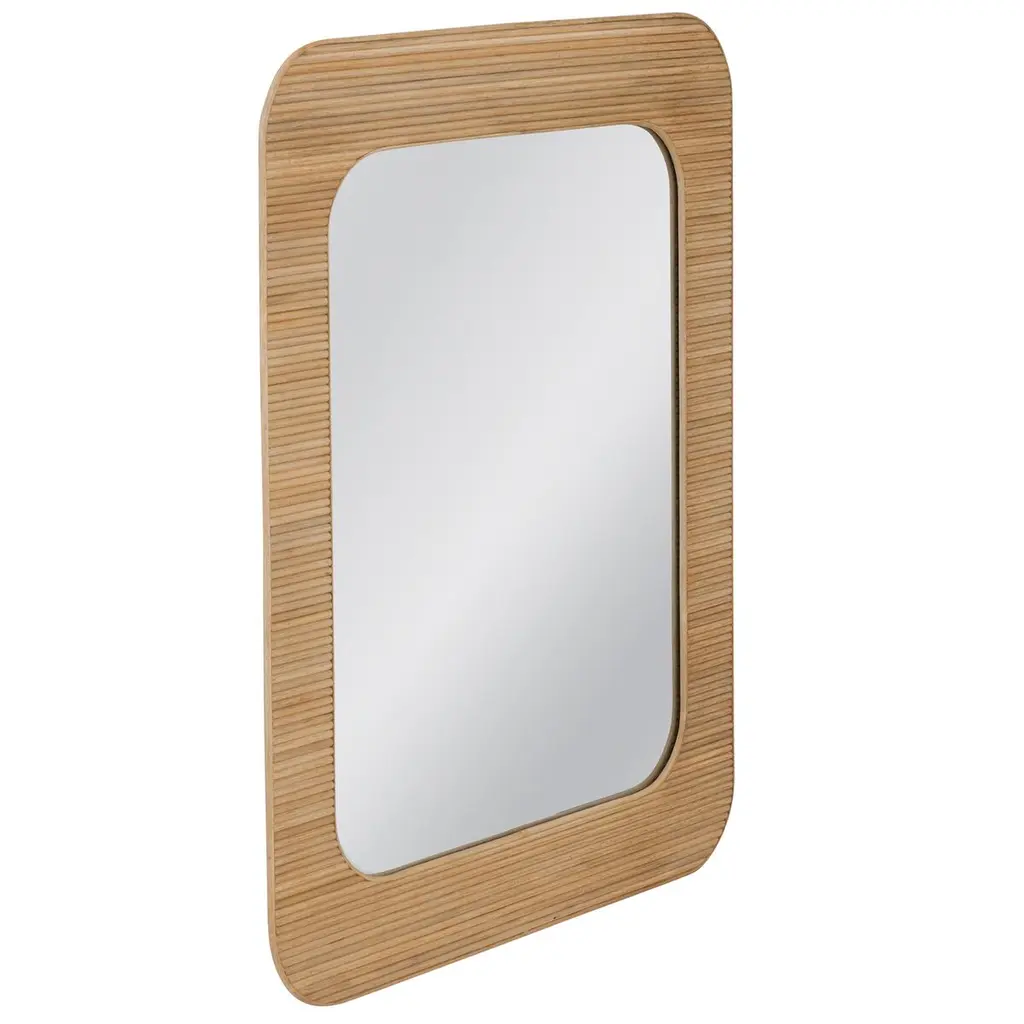 The Haruki Wall Mirror features a rectangular shape with rounded corners and a unique horizontal wood slat design, adding a touch of boho charm to any room. The natural wood elements bring warmth and texture, making it a perfect fit for a variety of interiors, from living rooms to bedrooms or entryways. With its simple yet stylish design, this mirror enhances your space while adding a relaxed, bohemian vibe. The Haruki Wall Mirror effortlessly combines function with aesthetic appeal, making it a versatile addition to your home decor.