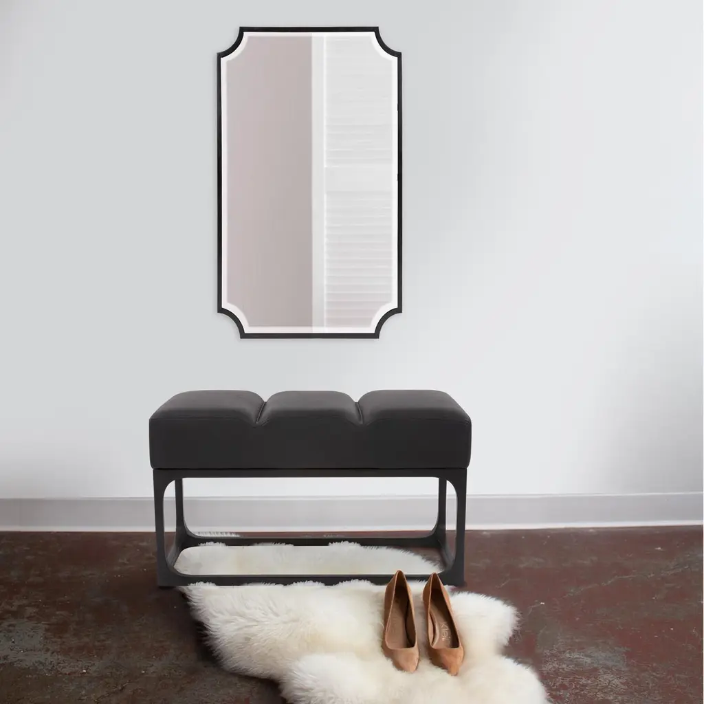 Shields for centuries have inspired many unique designs including furniture, fabrics, accessories and mirrors. Our Hastings Rectangular Mirror is one such shape that still relates to todays home decor. The brushed black stainless steel frame mirror with bevel recreates a style that is timeless for the ages. Additional finish available.