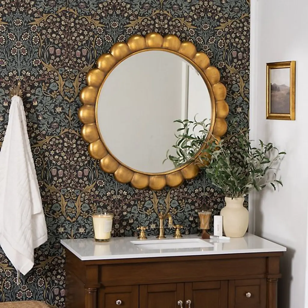 Make a bold design statement with the Hattie Wall Mirror from Cooper Classics. Its wood frame, crafted primarily from a series of smooth, rounded spheres, exudes mid-century modern charm with a playful twist. Perfect for adding texture and character, this striking mirror enhances any room with its artistic and sophisticated style.