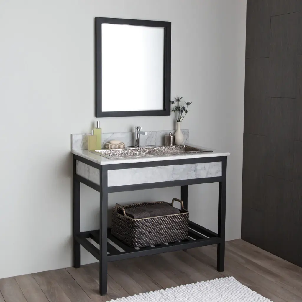 The Havana Mirror"™s bold steel frame and beveled glass seamlessly accent any transitional or contemporary design aesthetic. Hangs vertically or horizontally. Pair with Native Trails"™ Cuzco Vanity. Features:-Constructed of steel providing durability and a contemporary appearance-Mirror features beveled glass-Steel frame with a matte black finish-Coordinates with Native Trails'' Cuzco Vanity-Wall-mounted installation-Back of frame includes integrated hanging tabs for installation-Mounts both horizontally and vertically-Covered under Native Trails limited lifetime warranty