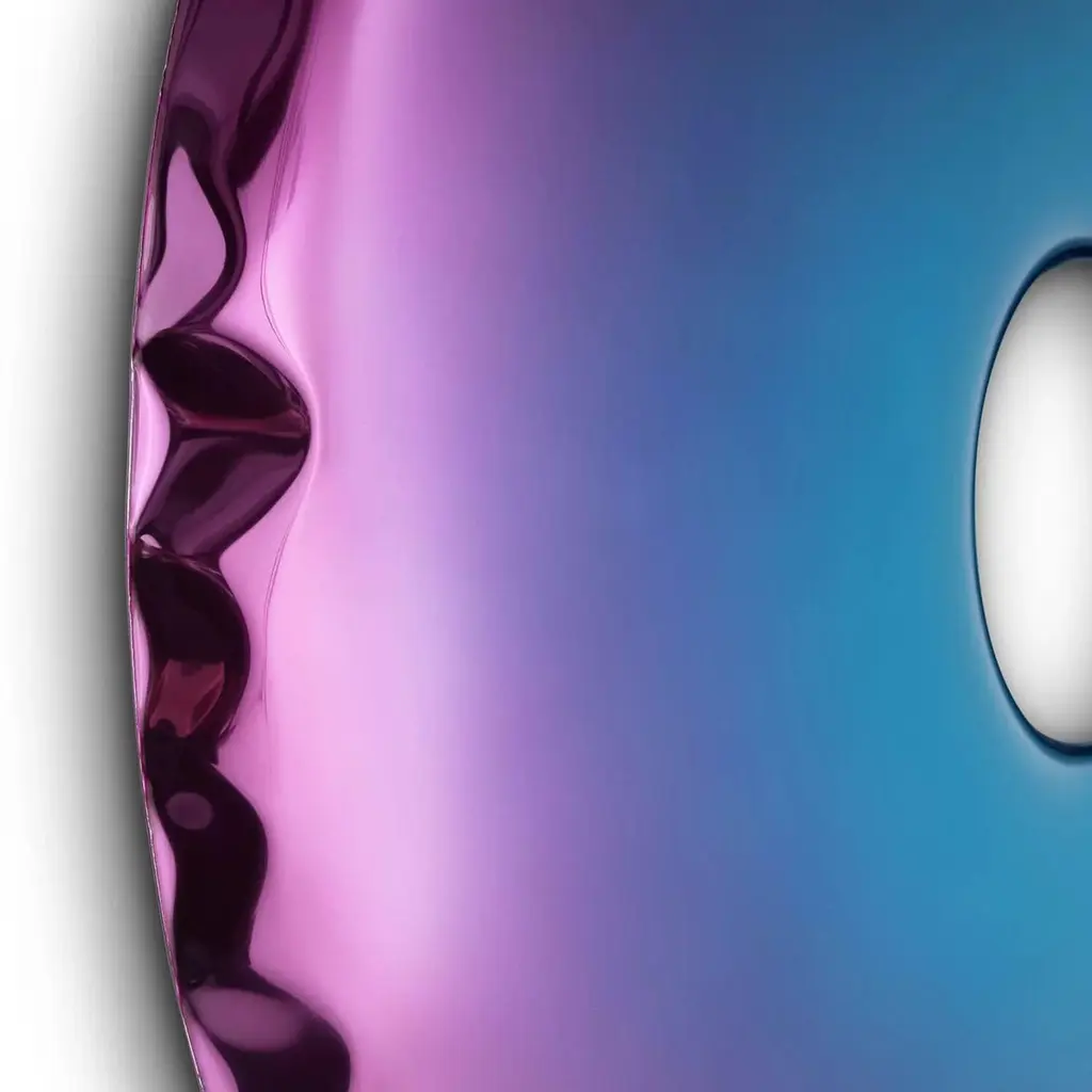 Helix Nebula Tanzanite Amethyst Rondo 150 Sculptural Wall Mirror by ZietaDimensions: ø 150 x D 6 cm. Materials: Stainless steel. Finish: Helix Nebula Tanzanite Amethyst transition. Available in different finishes. Also available in different sizes: ø 75, ø 95 and, ø 120 cm. Please contact us.The Rondo Mirror is made of stainless steel polished to a high gloss. Its polished surface is perfectly reflecting the light and other objects placed in the same room or hall. Largescale convexities that appear on the surface of the mirror are literally able to alter the space. It is like making an individualized interior design of the moment when by rolling the mirror from one place to another everybody can create or rediscover a well-known environment to a brand new and grasping concept. Depending on Rondo´s arrangement, either by hanging it or leaning at the wall, the mirror can change the perception of the surroundings.Deep, dark, blue, and intriguing. The new unique finish of Rondo Deep Space Blue takes the spectators for an unexpected journey into an undiscovered world of reflections. The mirror resembles cosmic wonders and at the same time can be fitted with the most demanding and elegant interiors. Color gives meaning and brings associations. The Gradient collection presents the whole spectrum of shades of cool sea depth. Carefully selected colors blend well with the hard steel.About Zieta: Zietas main goal is to deliver uniqueness and customization in design and construction while keeping the production, transport, and warehousing innovatively efficient.This is how they imagine the future world: Light, durable structures of customized applications produced on demand out of one-of-a-kind parts, yet efficiently.They use a computer-controlled production process. Customized pattern, customized form, customized function, one-of-a-kind product, and outstanding precision are what they deliver.You will find all of this philosophy reflected in the products. They research, they discover new possibilities, they play with forms and they deliver a beautiful, innovative, surprising outcome to people who love the design and who care about design development.They believe their work is a valuable contribution to the world of design not only by the unique beauty of the forms but most of all by opening ultra-innovative opportunities of forming and new paths for the world of the future.