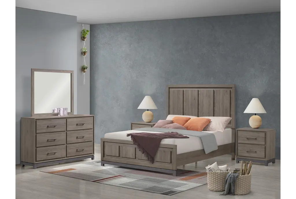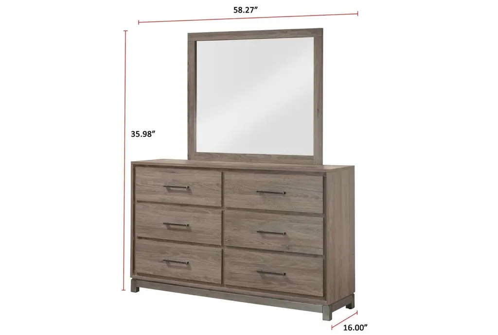 Dark wood paneling, antique brass hardware, and an industrial edge. The Hendricks mirror brings style and function to the bedroom. Hendricks features a rich brown finish with natural wood grain detailing. Pair this piece with the rest of the collection for a seamless bedroom aesthetic.