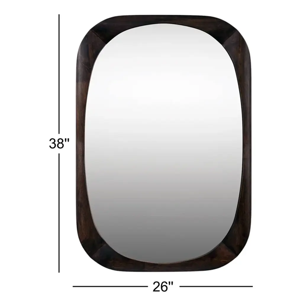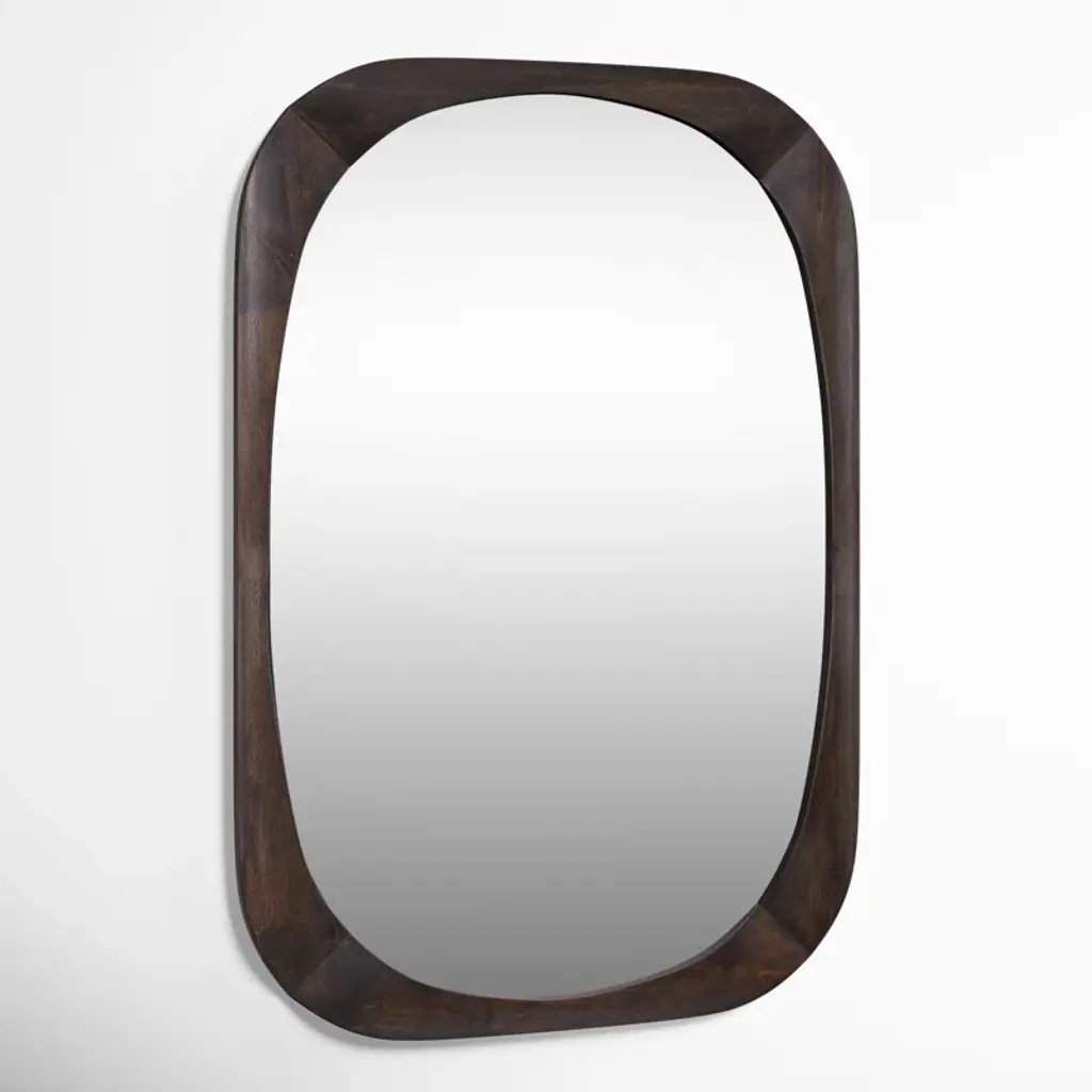 This Mirror Evokes A Mid-century Style With Its Rounded Edges And Minimal, Modern Design. The Solid Wood Frame Is Finished In A Dark Walnut Stain. This Mirror May Be Hung Horizontal Or Vertical.
