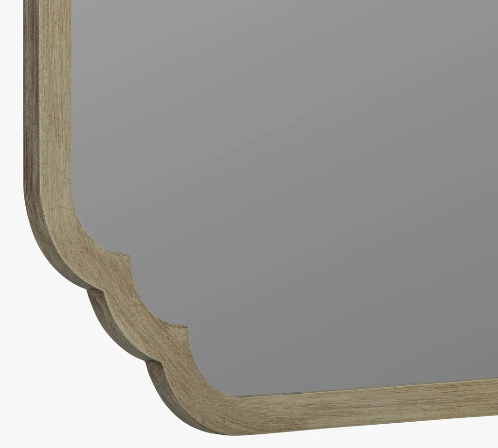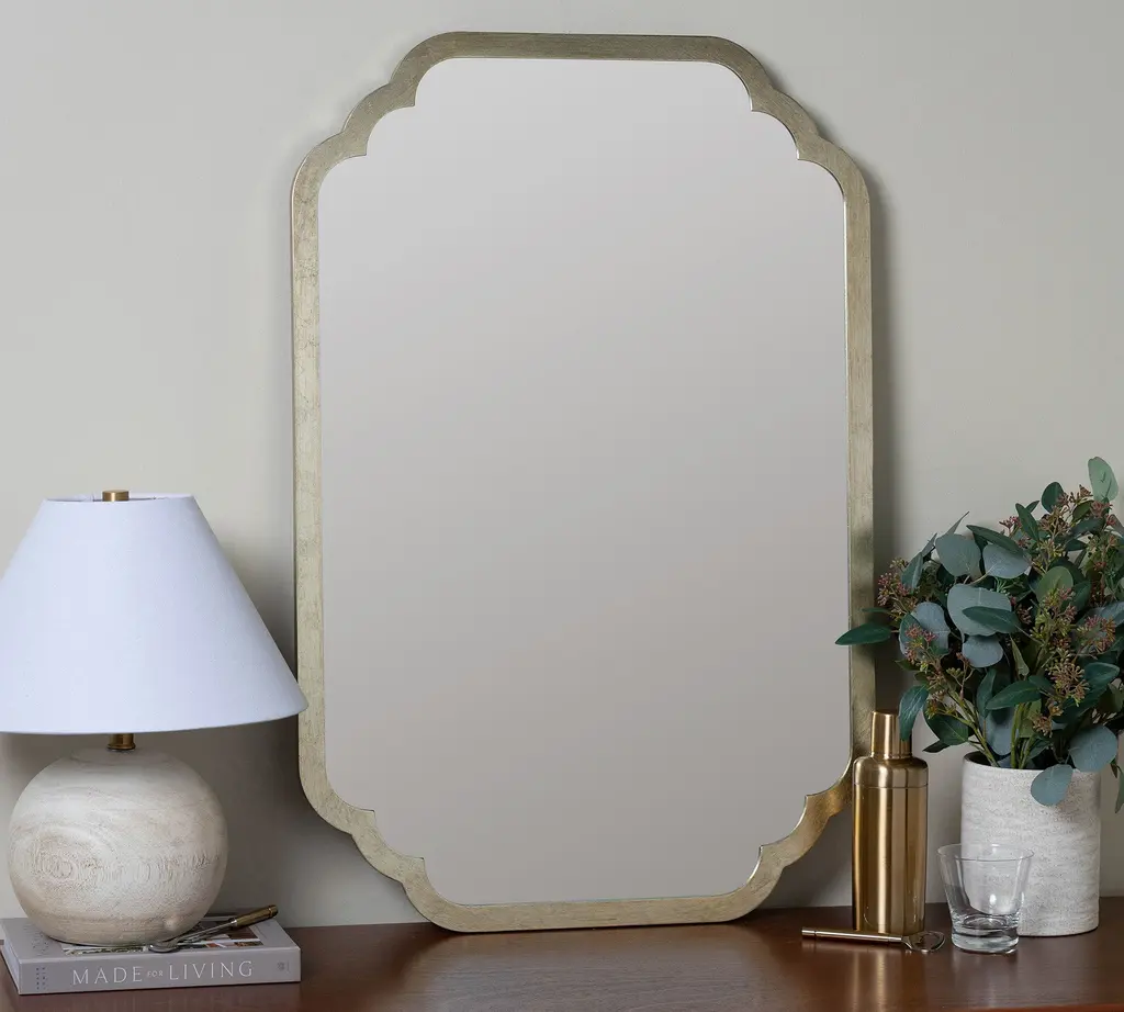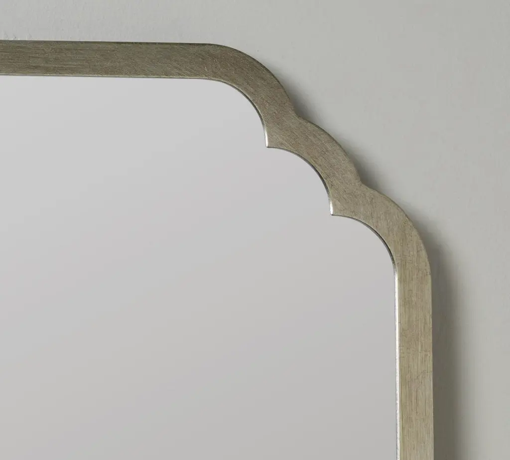 Scalloped corners add a timeless touch to this elegant mirror. Perfect to add a romantic feel and subtle style, it can be hung vertically or horizontally. Dress up any space with this distinctive accent piece.