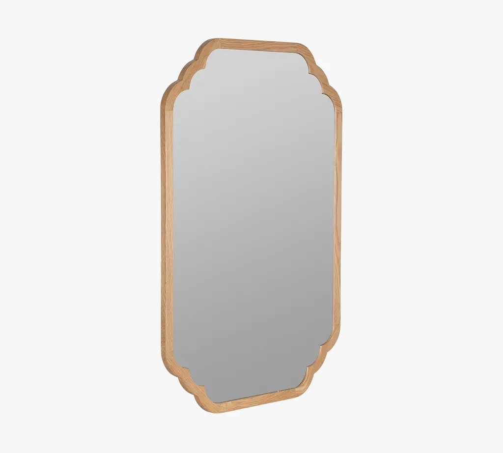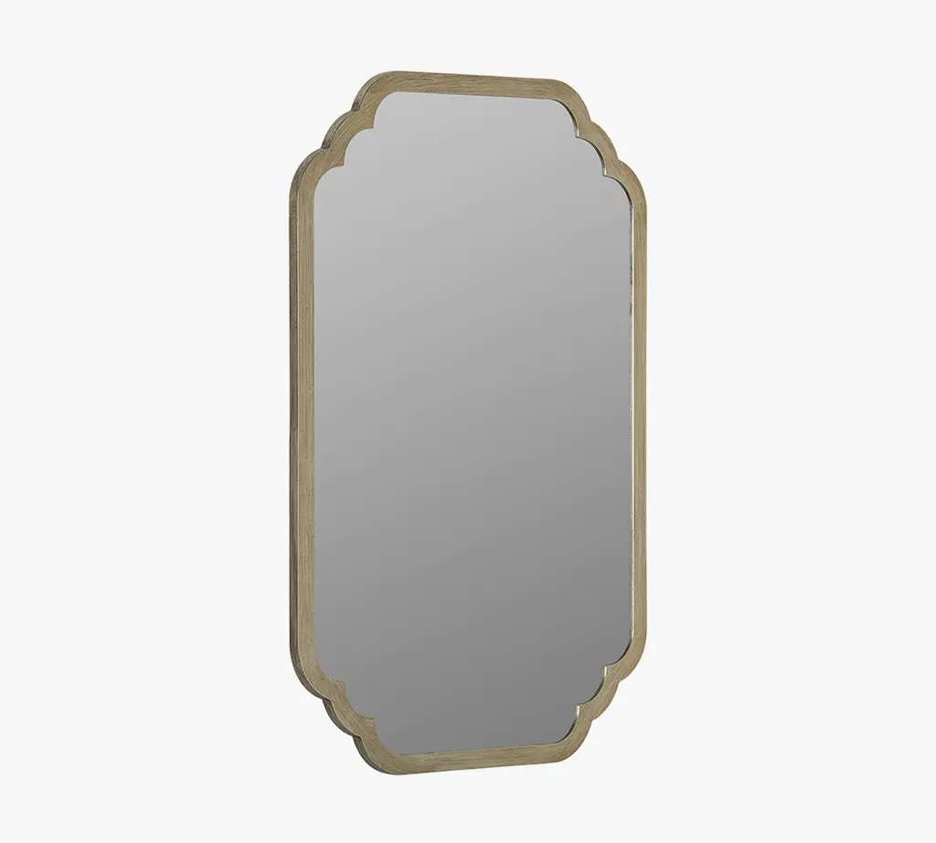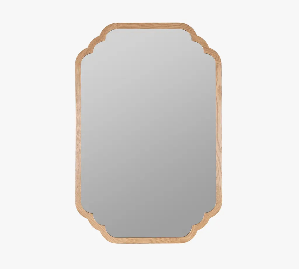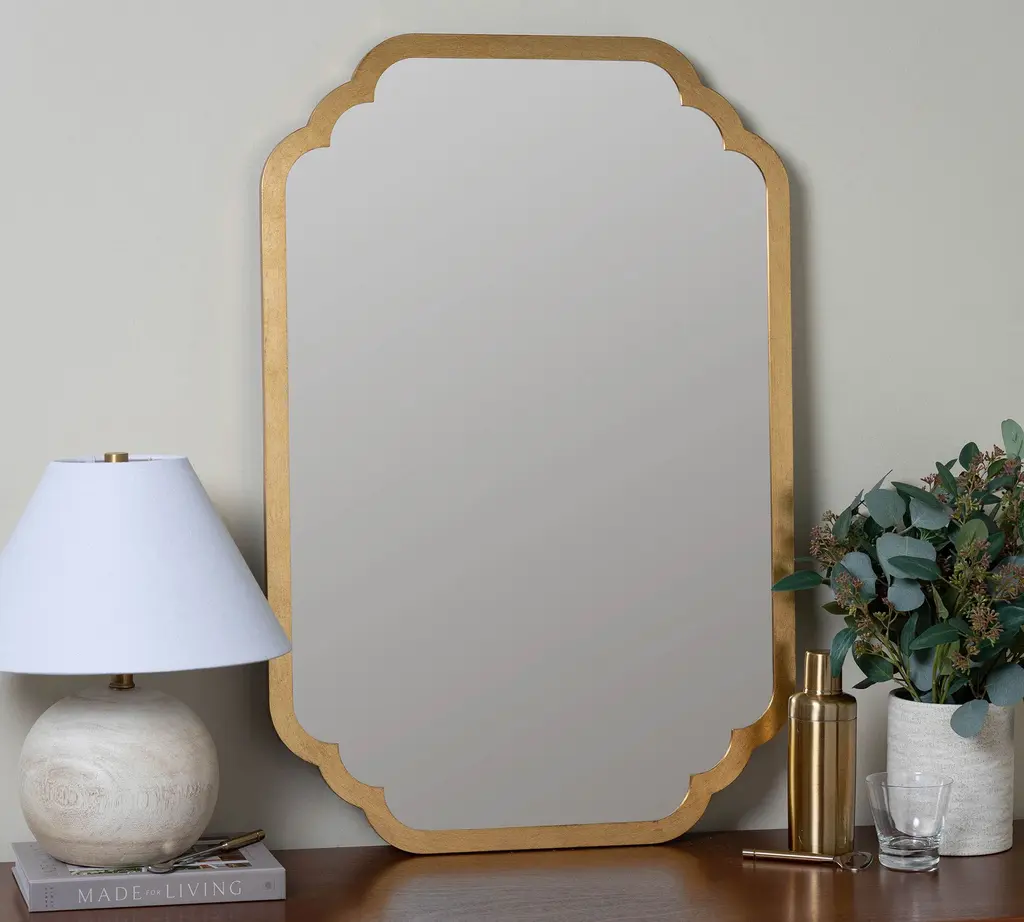 Scalloped corners add a timeless touch to this elegant mirror. Perfect to add a romantic feel and subtle style, it can be hung vertically or horizontally. Dress up any space with this distinctive accent piece.