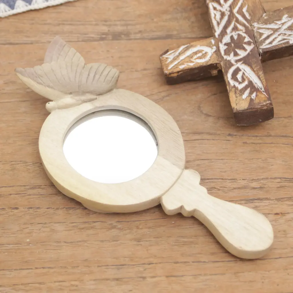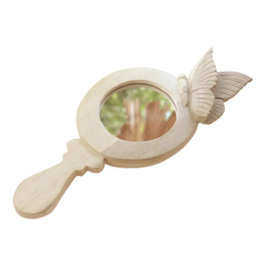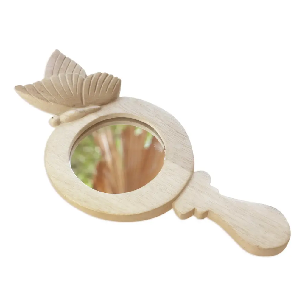Hibiscus Wood Hand Mirror With Hand-Carved Butterfly- Butterfly Self